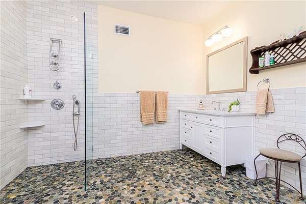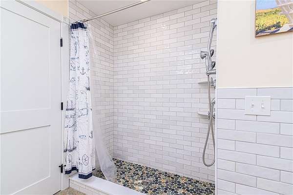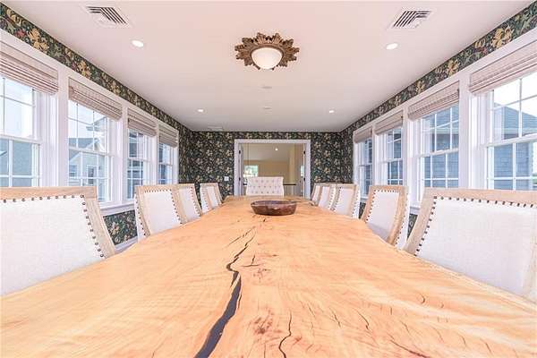 This home features a gourmet kitchen with beautiful water views of Narragansett Bay and serene landscape of Fort Getty. The dining area connects both the North and South area's of the home large enough to seat 15. There is a great room with cathedral ceilings, pool table, full bath, full bar and access to the patio to grill, lounge or dine. There is a secondary living area on the Northernly end of the home featuring a fireplace cozy seating area with leather couches. Also available on this level you will find the elevator, fully equipped laundry room, mudroom, guest suite with king bed and large bath.