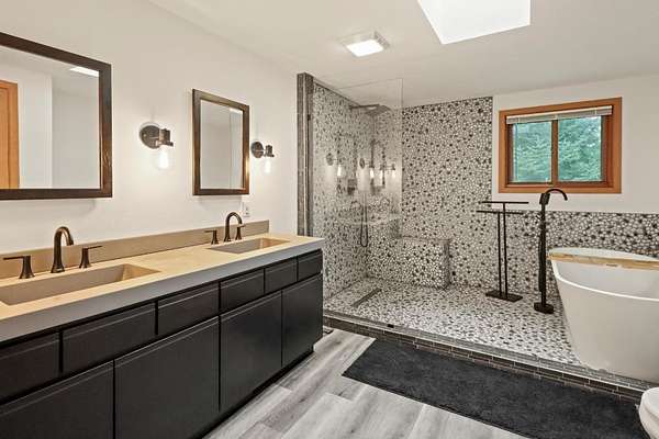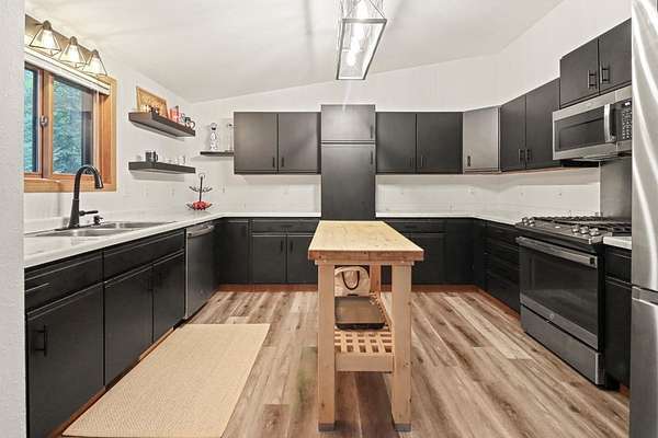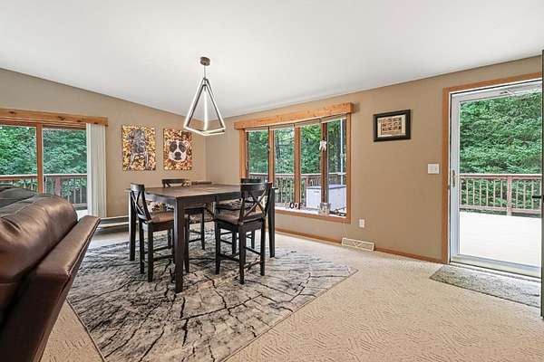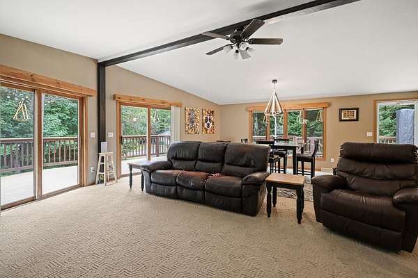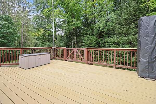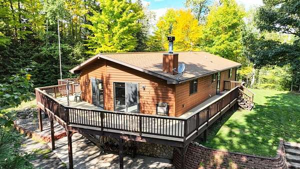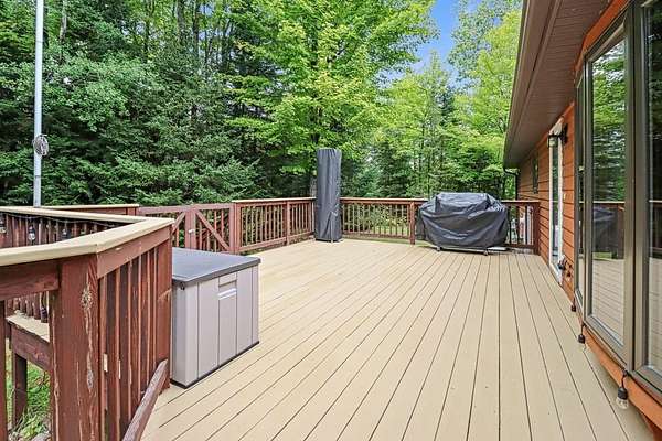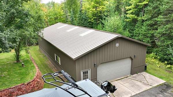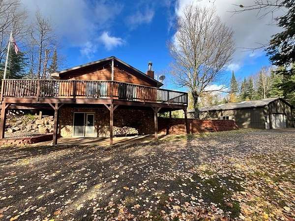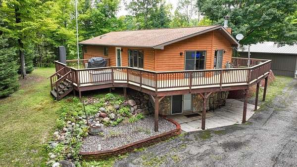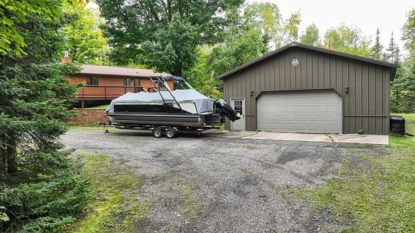 Are you an outdoor enthusiast looking for privacy in the Northwoods? Look no further!! Located in the Natural Lakes Private Preserve which covers 3,600 acres, of which 800 acres is common land for homeowners and deeded access to 4 lakes. This home sits on approx. 2 acres and has a60x30 building equipped w/ an air compressor and updated lighting. In the home you'll find a main floor oversized primary suite and walk-in closet. Sought after main floor laundry/mudroom and a half bath. The open concept living area and beautiful kitchen offers spectacular views of the property. Step out the patio doors and take in the fresh air on the large wraparound deck. Head downstairs to the finished walk-out lower level with knotty pine wainscoting and a 2nd bedroom plus another full bath. This home is also equipped with central air and a back-up Generac. In the last 3 years the sellers have updated the master bathroom, put in LVP flooring, and done massive landscaping. Visit
