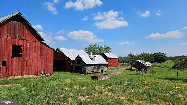 An incredible investment opportunity, Spring Hill Farm has nearly 300 acres of pasture, woodlands, and crop land interspersed with streams, a pond, and a scenic bold run (Muddy Run) that traverses the back of the property. The land has been carefully maintained over the centuries and it is one of the few remaining larger tracts in the neighborhood of upscale large lot homes. While there is significant development potential in the farm given recent growth in the area, there is also an opportunity for a substantial conservation easement on this larger intact tract. The current agricultural operation is easily continued as a family farm, converted to an equestrian center, or developed as a vineyard/winery. There are a number of stunning building sites to take advantage of the pastoral beauty of the landscape and the Blue Ridge mountains in the distance. The recently renovated farmhouse is in move-in condition, and can easily be rented out, but it also affords an opportunity for expansion into a substantial manor house. Whatever your goals, Spring Hill Farm offers a diverse array of options for future use. Built in 1837, the farmhouse has been added on to over the years - most significantly in 1950 and then again in 1994. Today the indigo farmhouse with a red roof has been updated with new clapboard and other trim repairs as well as a new HVAC system upstairs and a new expanded upstairs bath. The rooms reflect the expansion over the centuries, but all are well proportioned and easily accessible. A large (attached) three car garage has an unfinished upper level that can be easily converted into an apartment or office space. The current configuration of the main house is three bedrooms but a fourth bedroom is easily arranged from the office/study rooms on the upper level. The house has a mix of older wavy glass and modern double paned windows. The cellar features old stone walls that have been partially plastered. The water source for the house is an underground spring that provides a good supply of water. An additional 40 gallons per minute well is located elsewhere on the farm. There are a variety of outbuildings on the farm. Most are clustered together within walking distance from the house. These buildings, with the exception of the log cabin, are all stable and usable. However, only one is equipped with electricity. They include a three bay 'carriage' shed by the house suitable for lawn mowing equipment. A red barn with a stone foundation is used for storage and home for barn cats. A corn crib barn is nearby. A log cabin frame is situated next to the corn crib. The machine shed barn is a large structure with seven bays for storing tractors and farm equipment. The larger red barn has a concrete floor and has electric service. It has a series of smaller rooms used for a workshop and storage. A large 60 x 75 hay barn is located some distance away and can service as hay storage and bunk feeding for cattle. The 298 acres of Spring Hill Farm are divided between 77 acres of crop land (currently planted in beans and corn) and 160 acres of fenced pasture/hayfield, and approximately 60 acres of woodlands. The woodlands are a mix of pine and hardwoods of limited timber value. The farm is currently tenanted with a farmer running a cow/calf operation and maintaining the crop lands. There are smaller fenced paddocks for working the cattle, but handling facilities are at a minimum. Fencing in pastures is a mixture of board fencing, high tensile wire and barbed wire. A large 1 acre spring-fed pond is stocked with fish and provides a water source for cropland irrigation if necessary. The farm is currently divided into three separate tax parcels, but further subdivision could be applied for with Culpeper County. Or, alternatively the farm could be protected with a conservation easement. There are numerous building sites throughout the farm that afford spectacular views while keeping farmland intact.