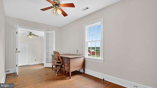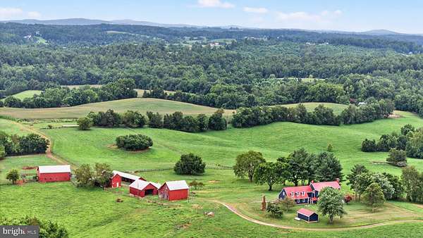 An incredible investment opportunity, Spring Hill Farm has nearly 300 acres of pasture, woodlands, and crop land interspersed with streams, a pond, and a scenic bold run (Muddy Run) that traverses the back of the property. The land has been carefully maintained over the centuries and it is one of the few remaining larger tracts in the neighborhood of upscale large lot homes. While there is significant development potential in the farm given recent growth in the area, there is also an opportunity for a substantial conservation easement on this larger intact tract. The current agricultural operation is easily continued as a family farm, converted to an equestrian center, or developed as a vineyard/winery. There are a number of stunning building sites to take advantage of the pastoral beauty of the landscape and the Blue Ridge mountains in the distance. The recently renovated farmhouse is in move-in condition, and can easily be rented out, but it also affords an opportunity for expansion into a substantial manor house. Whatever your goals, Spring Hill Farm offers a diverse array of options for future use. Built in 1837, the farmhouse has been added on to over the years - most significantly in 1950 and then again in 1994. Today the indigo farmhouse with a red roof has been updated with new clapboard and other trim repairs as well as a new HVAC system upstairs and a new expanded upstairs bath. The rooms reflect the expansion over the centuries, but all are well proportioned and easily accessible. A large (attached) three car garage has an unfinished upper level that can be easily converted into an apartment or office space. The current configuration of the main house is three bedrooms but a fourth bedroom is easily arranged from the office/study rooms on the upper level. The house has a mix of older wavy glass and modern double paned windows. The cellar features old stone walls that have been partially plastered. The water source for the house is an underground spring that provides a good supply of water. An additional 40 gallons per minute well is located elsewhere on the farm. There are a variety of outbuildings on the farm. Most are clustered together within walking distance from the house. These buildings, with the exception of the log cabin, are all stable and usable. However, only one is equipped with electricity. They include a three bay 'carriage' shed by the house suitable for lawn mowing equipment. A red barn with a stone foundation is used for storage and home for barn cats. A corn crib barn is nearby. A log cabin frame is situated next to the corn crib. The machine shed barn is a large structure with seven bays for storing tractors and farm equipment. The larger red barn has a concrete floor and has electric service. It has a series of smaller rooms used for a workshop and storage. A large 60 x 75 hay barn is located some distance away and can service as hay storage and bunk feeding for cattle. The 298 acres of Spring Hill Farm are divided between 77 acres of crop land (currently planted in beans and corn) and 160 acres of fenced pasture/hayfield, and approximately 60 acres of woodlands. The woodlands are a mix of pine and hardwoods of limited timber value. The farm is currently tenanted with a farmer running a cow/calf operation and maintaining the crop lands. There are smaller fenced paddocks for working the cattle, but handling facilities are at a minimum. Fencing in pastures is a mixture of board fencing, high tensile wire and barbed wire. A large 1 acre spring-fed pond is stocked with fish and provides a water source for cropland irrigation if necessary. The farm is currently divided into three separate tax parcels, but further subdivision could be applied for with Culpeper County. Or, alternatively the farm could be protected with a conservation easement. There are numerous building sites throughout the farm that afford spectacular views while keeping farmland intact.
