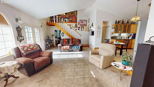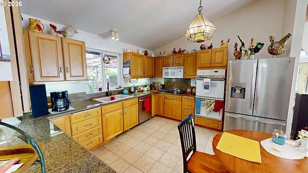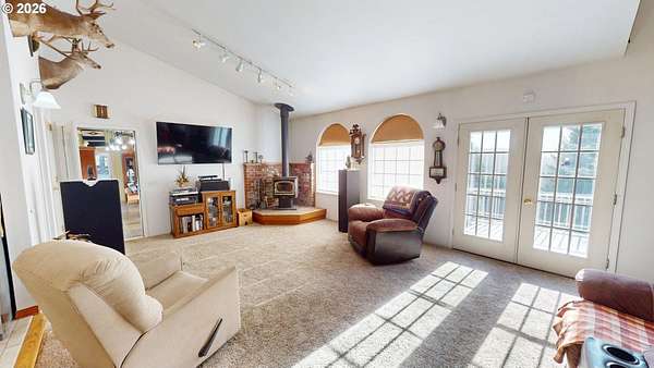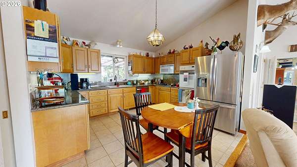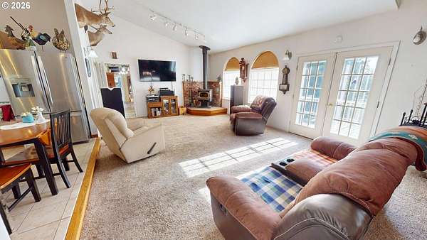 Private River & Mountain Retreat with Shops, Garages & Room to Roam | 5.68 Acres. Tucked away on 5.68 private acres, this exceptional property offers the perfect blend of comfort, functionality, & lifestyle-ideal for those who need space for toys, tools, or serious hobbies, without sacrificing a beautiful home setting.The 3BR/3BA home welcomes you with slate entry floors and a light-filled living room featuring vaulted ceilings & a cozy woodstove-perfect for cool evenings. French doors open to a large composite deck where river/ mountain views create an unforgettable backdrop for entertaining or quiet mornings with coffee.The primary suite on the main level is both spacious & stylish with luxury vinyl flooring, a walk-in closet, & an ensuite bath with a tiled shower. A second main-level bedroom also features LV flooring, while a guest bath includes a convenient tub/shower combo. The kitchen is designed for cooks and entertainers alike, offering granite countertops, tiled floors, a vaulted ceiling, & all appliances included-dual ovens,cooktop, built-in microwave, dishwasher, & refrigerator.Upstairs, a loft-style bedroom with its own bath provides flexible space for guests, a home office, or a private retreat.Outside is where this property truly shines. In addition to the attached 2-car garage and a detached 25' x 34' garage w/ power, you'll find an impressive 30' x 30' shop that is fully finished, insulated, wired with 220V, & equipped with 10' doors w/ openers. The shop is extra deep with side parking, & the entire approach is paved, making it ideal for boats, trailers, RVs, and easy in/out access.A beautifully fenced area for pets adds everyday convenience, while the expansive acreage ensures privacy, peace, and endless possibilities.Major updates include a new roof, new exterior paint, and gutter guards (2020)-offering peace of mind for years to come. This is more than a home-it's a lifestyle property built for those who value space, views, and versatility.