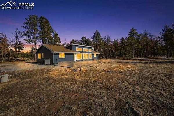 Pre-listing appraisal completed-home priced according to recent professional valuation. Discover the perfect blend of privacy, space, and convenience in this air-conditioned six-bedroom, four-bath ranch-style home set on five fully fenced, manicured acres with towering old-growth Ponderosa pines in sought-after southern Black Forest. Enjoy peaceful rural living just minutes from schools, shopping, and popular trails at Section 16 and The Pineries, all within award-winning District 20. This home has undergone a comprehensive high-end remodel and major system upgrades, offering true turnkey living. Custom front doors open to a stunning great room with vaulted ceilings, transom windows, and a wall of glass that fills the space with natural light. Fresh interior paint, white window frames, new trim, and modern interior doors with black hardware elevate the home throughout. The fully remodeled kitchen features upgraded appliances, generous counter and cabinet space, a cozy sitting area, main-level laundry, and access to a composite deck ideal for entertaining. The thoughtfully designed floorplan offers exceptional main-level living, with the primary suite privately separated from three additional bedrooms, office, and flex space. The luxury primary bath includes a rain shower with full glass enclosure and coordinated finishes with the guest bath. The finished basement adds two bedrooms, a full bath, family room, kitchenette/bar, and bonus office or craft room with glass French doors. Exterior upgrades include full repaint, stamped concrete patio, new driveway and sidewalks, and an oversized extra-deep detached two-car garage with workshop space. Major improvements include an 80-gallon hybrid water heater, Culligan whole-home water filtration system, advanced security system, remote-controlled blinds, new flooring throughout, and durable cement siding. With no HOA and expired covenants, this is ready for a new home owner with acreage to add onto.
