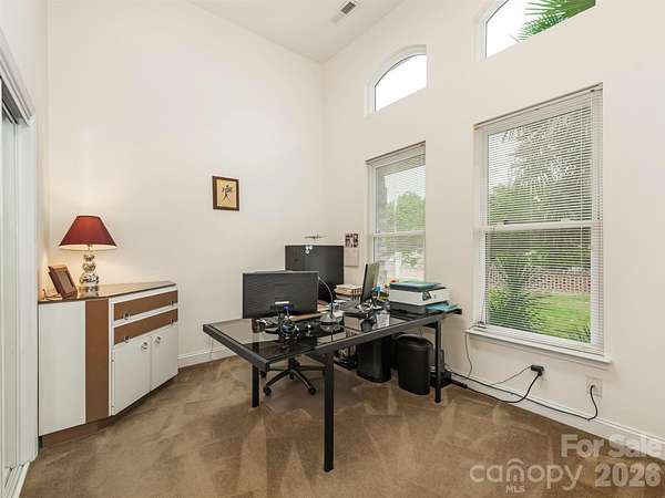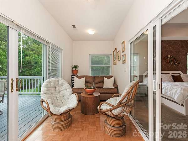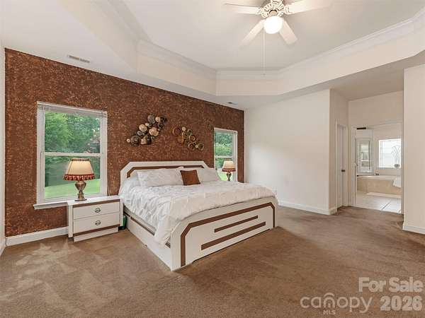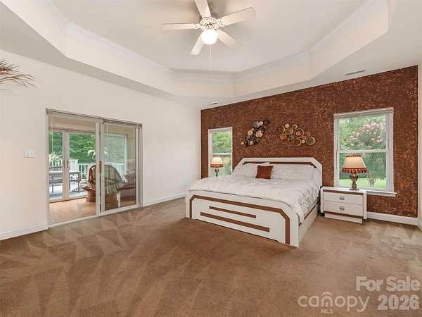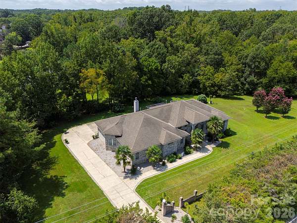 Amazing Property in this meticulously maintained full-brick custom ranch nestled on 2.3 private acres in the highly desired Weddington school district. This 5-bedroom, 4-bath home offers soaring ceilings, formal dining room, living room, family room with a fireplace and wrap around sunroom overlooking the sprawling deck with serene pond views. The spacious floor plan is perfect for entertaining with many sitting areas, a kitchen with gorgeous counters, breakfast bar and outside grilling area. The flat yard with a fire pit and mature trees will be enjoyable for all. Many storage areas, spacious bedrooms and oversized rear facing 3-car garage with extra parking. The 5th Bedroom is currently an office, many flex spaces and NO HOA is just an example of how this home has endless opportunities.
