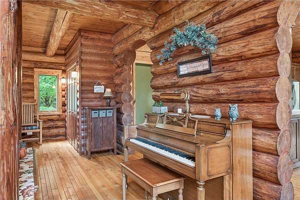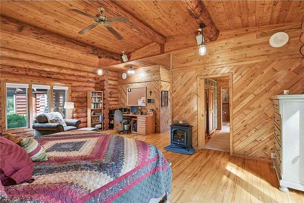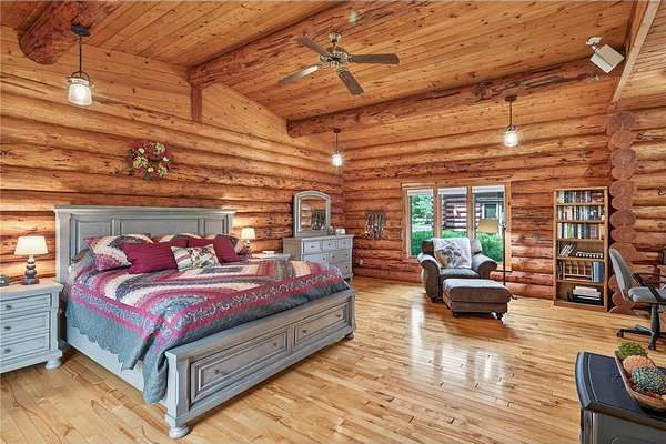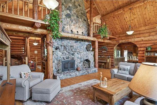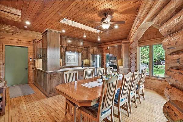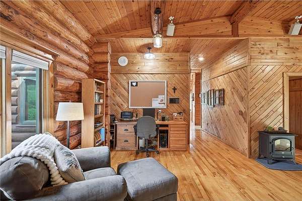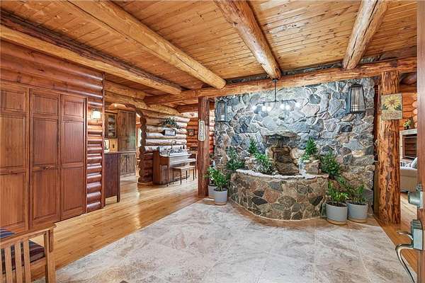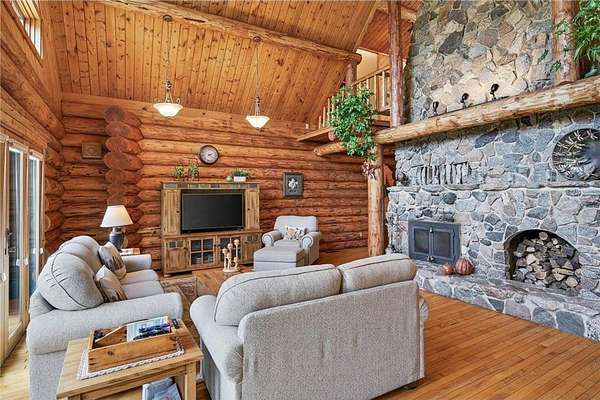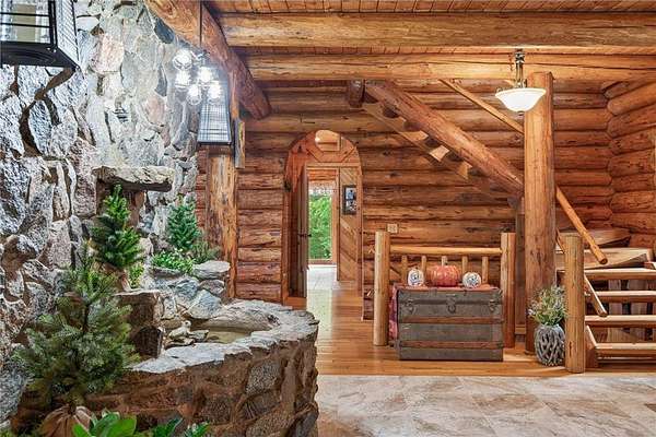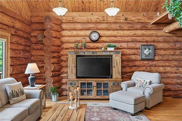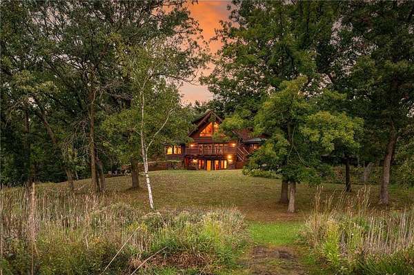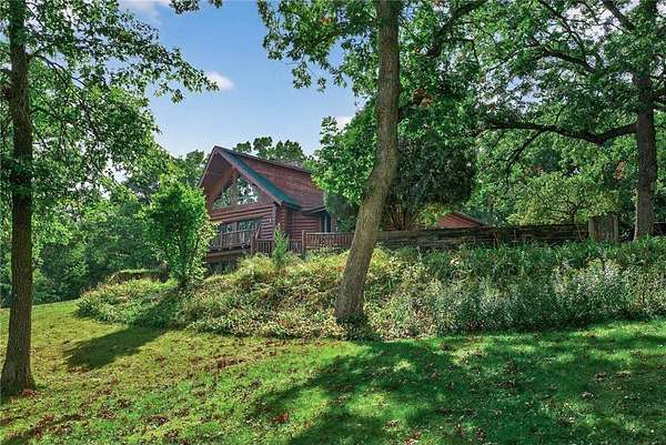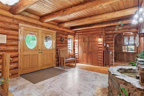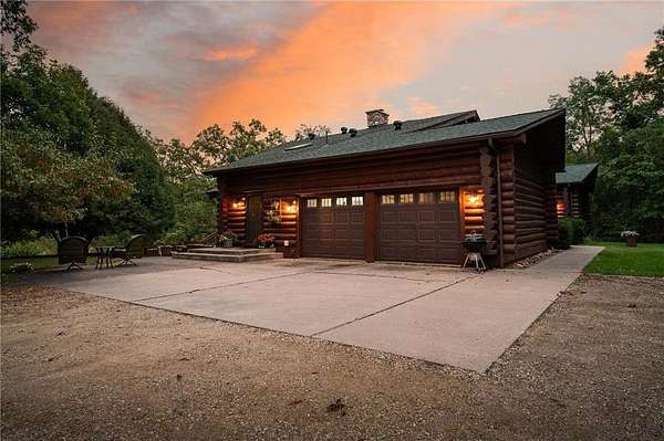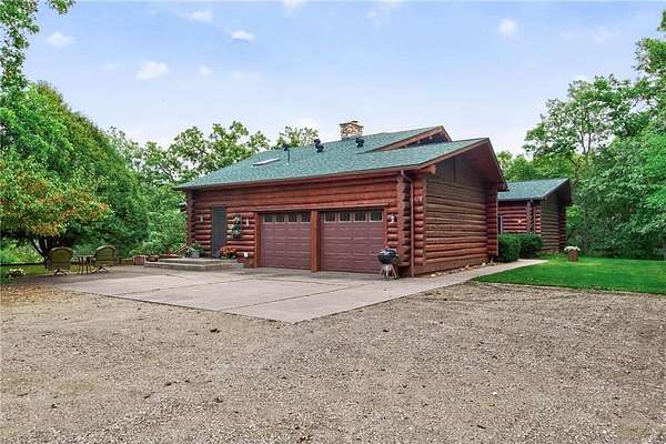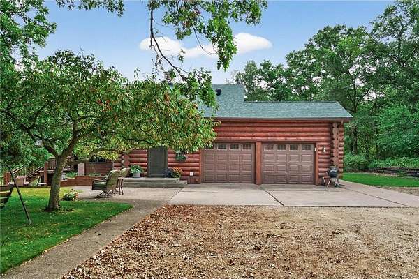 Welcome to this beautifully crafted log home nestled on almost 10 acres located just north of Elk River. This property has so much to offer. Absolutely must see to believe! Enjoy stunning panoramic views of the pond and all of nature's beauty through the full wall of windows in back. Soaring vault, massive stone fireplace and one-of-a-kind water feature in the entry are just a few of the many attributes this home has to offer. It is boasting with rustic charm and offers all of the modern conveniences you have come to expect. It features a totally remodeled kitchen, luxurious Owner's Suite (nearly 1/3 of the main level), remodeled bath with whirlpool tub, sauna, newer roof (2022) and remodeled lower level. There has been an addition to the upper level adding another BR and storage. The detached garage/workshop has an adjoining living space that has also been completely redone, creating an excellent rental opportunity or mother-in-law apartment. If that is not enough, the entire patio has been redone, there is a huge outbuilding for all the toys, a fenced garden area, 2 geothermal units have been added and there is wiring for a future generator. The abundance of wildlife makes for excellent hunting. All this plus there is a built-in dumbwaiter for loading wood inside for added convenience. You will certainly appreciate the pride in ownership and the attention to detail that is visible throughout! Schedule your tour today.