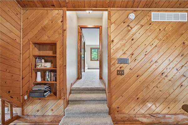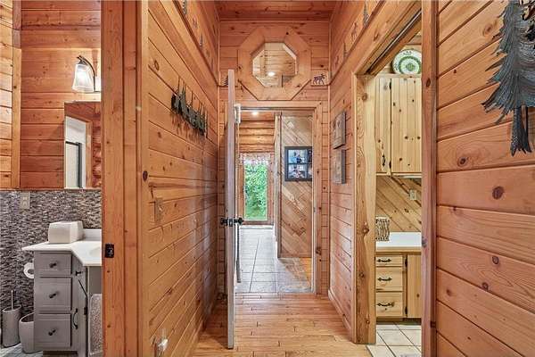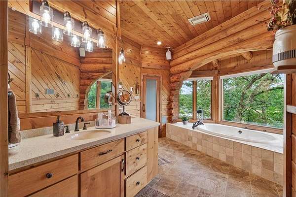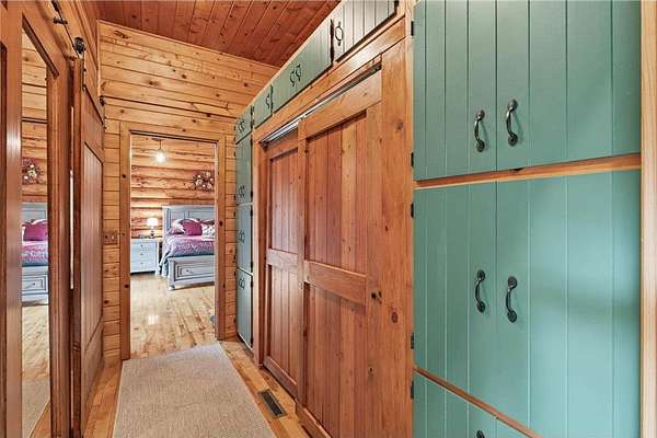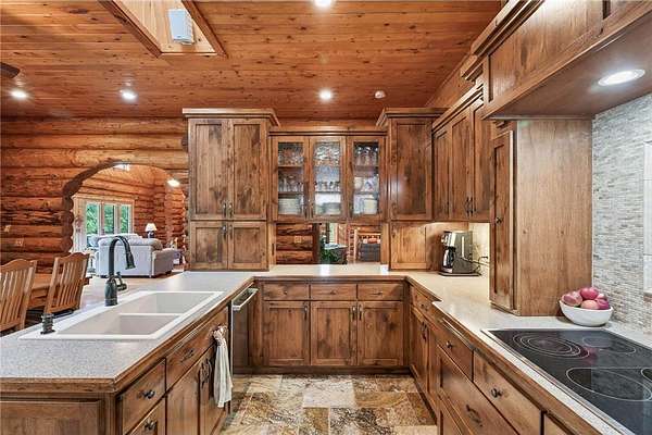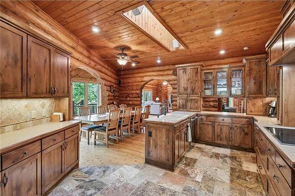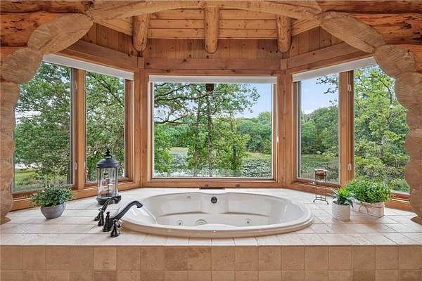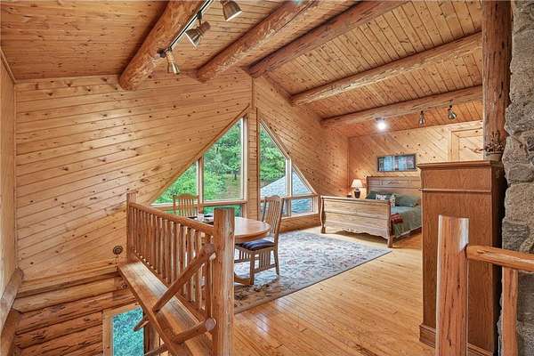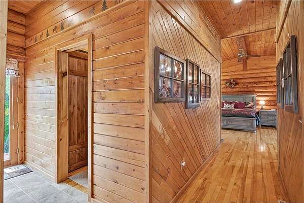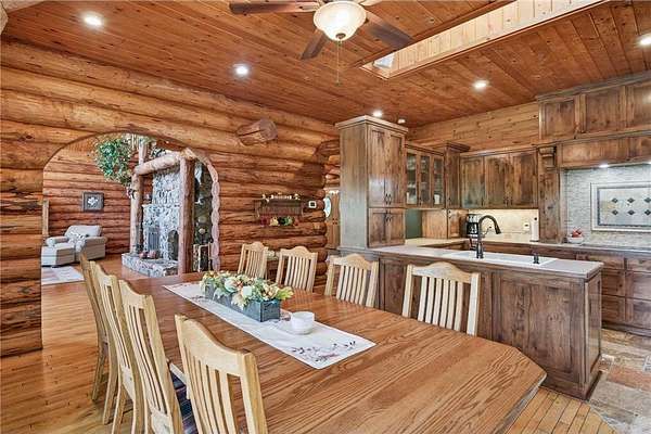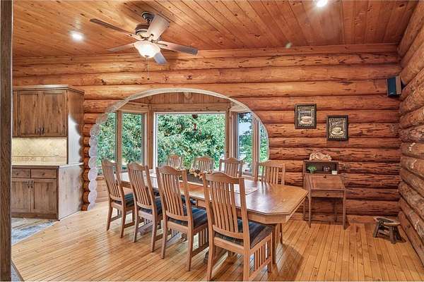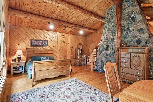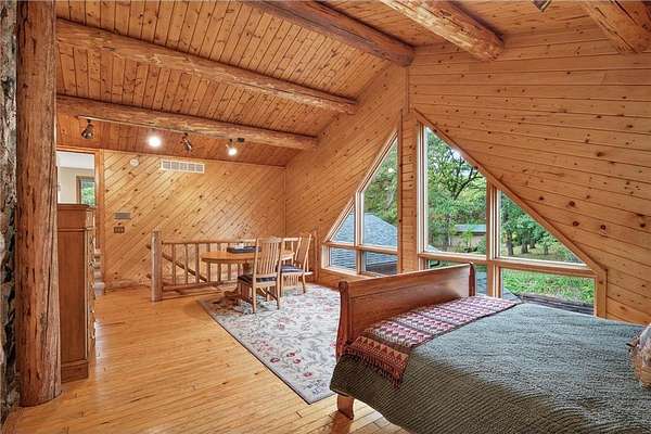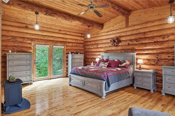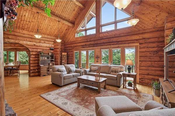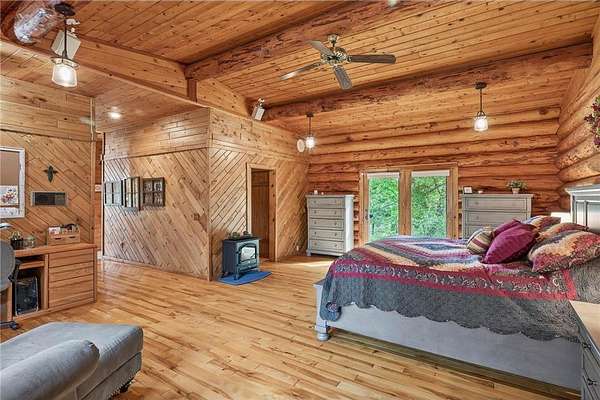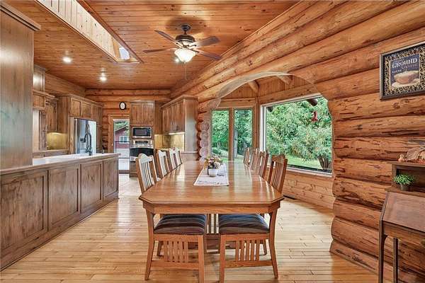 Welcome to this beautifully crafted log home nestled on almost 10 acres located just north of Elk River. This property has so much to offer. Absolutely must see to believe! Enjoy stunning panoramic views of the pond and all of nature's beauty through the full wall of windows in back. Soaring vault, massive stone fireplace and one-of-a-kind water feature in the entry are just a few of the many attributes this home has to offer. It is boasting with rustic charm and offers all of the modern conveniences you have come to expect. It features a totally remodeled kitchen, luxurious Owner's Suite (nearly 1/3 of the main level), remodeled bath with whirlpool tub, sauna, newer roof (2022) and remodeled lower level. There has been an addition to the upper level adding another BR and storage. The detached garage/workshop has an adjoining living space that has also been completely redone, creating an excellent rental opportunity or mother-in-law apartment. If that is not enough, the entire patio has been redone, there is a huge outbuilding for all the toys, a fenced garden area, 2 geothermal units have been added and there is wiring for a future generator. The abundance of wildlife makes for excellent hunting. All this plus there is a built-in dumbwaiter for loading wood inside for added convenience. You will certainly appreciate the pride in ownership and the attention to detail that is visible throughout! Schedule your tour today.