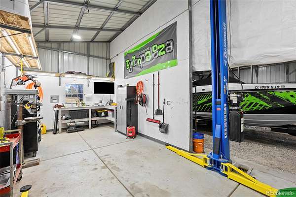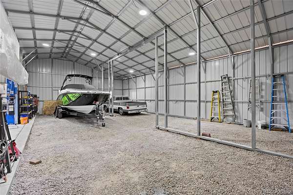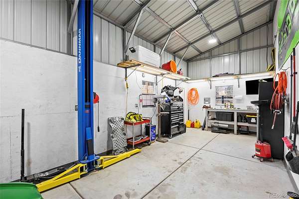 Ideal for RV owners, car enthusiasts, or home-based businesses, the property includes an oversized attached 2-car garage, detached 2-car garage, 2,250 sq ft metal RV/outbuilding with included 10K 2-post car lift, and a 780 sq ft barn with water and electricity—bring your horses or chickens! The property includes an RV dump and RV power hookups as well. Other features include two mini-split cooling units, new stucco and paint, newer windows and roof, new well pump, hot tub hookups and partial fencing with exception to a small section of the front of the property. Furniture and equipment may be included - call the listing agent for more info. A rare opportunity for Colorado country acreage living with NO HOA and close to town!