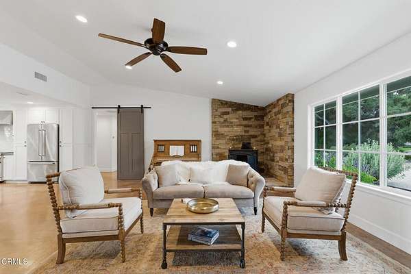 Welcome to single-level luxury in the Ballard School District: a spacious 3-bedroom, 3-bath Solvang retreat where open design and serene views create effortless elegance.A soaring entry opens directly to the heart of the home, featuring a gourmet kitchen, dining area, family room with rock fireplace, and inviting living room, all in one sweeping view. Sunset vistas frame the backyard and pasture beyond, complete with a 4-stall mare motel, tack room, and private gated access from a separate road. Start your day strolling beneath pepper trees with coffee in hand, or gather friends for picnics by the horses. The oversized front courtyard features a pergola, outdoor fireplace, several varieties of fruit trees, and generous covered porch with dining and seating, perfect for relaxed entertaining. Additional highlights include a finished 3-car garage with fire-safe metal doors. Nestled at the quiet end of a cul-de-sac this 2.27-acre property offers room to live, ride, and recharge. Your Solvang sanctuary awaits.