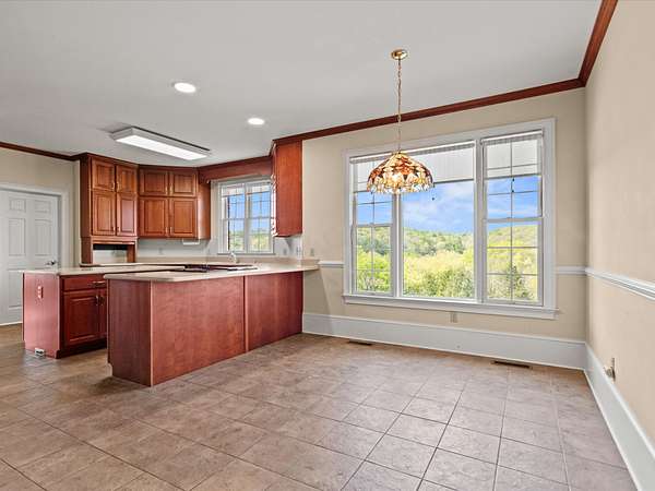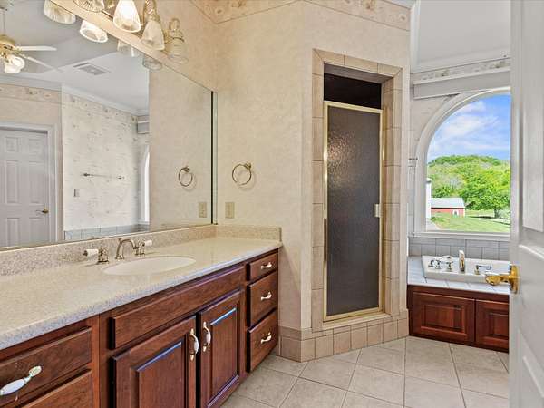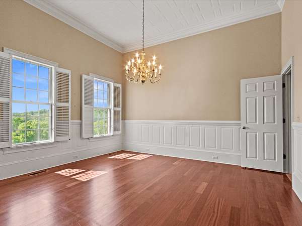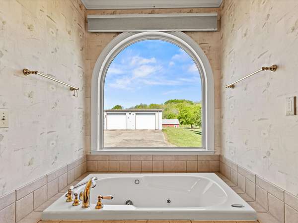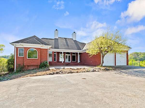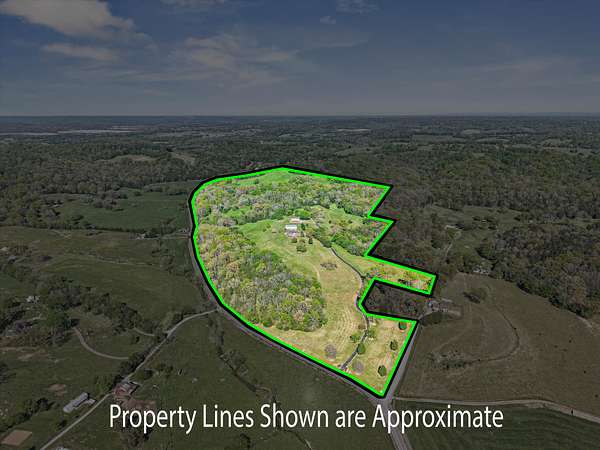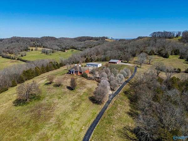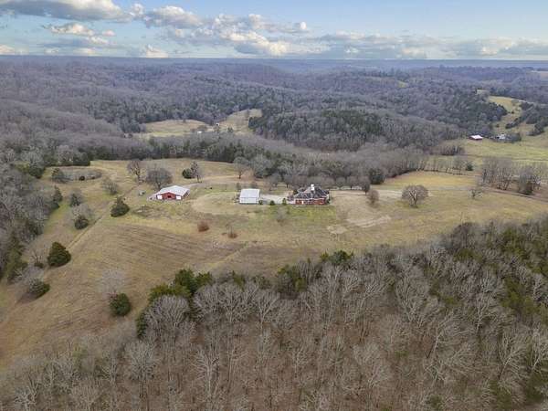 Beautiful 4BR/4BA 5409sf house sits on a hilltop with stunning views in every direction. Custom details are throughout the property: Brazilian cherry wood, solid surface counters and vanities, arched windows, high ceilings, and plantation shutters! The main floor has a foyer, living room with fireplace, dining room, eat-in kitchen with a walk-in pantry, three bedrooms, two and a half baths and a laundry room. The basement has a large den with a fireplace, a safe room, a bedroom, a full bath, and several spaces ready to customize to suit your needs. Detached 2-car garage with 760sf apartment, a large barn on +/- 87 acres with a mix of trees & open land make this property a rare opportunity!