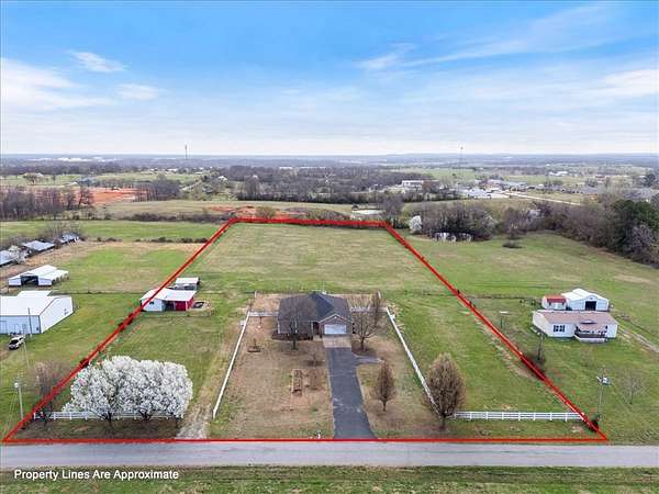 Welcome to your own private hobby farm retreat! This beautiful home sits on 5.66 acres and offers peaceful country living with convenient access to everything NWA has to offer. Located 15 miles from the new Walmart Home Office, 4 miles from XNA, and w/ quick access to the new XNA Connector (612 bypass), commuting is easy while still enjoying privacy and space. Property features vinyl fencing, multiple fenced areas, and a barn with stalls and tack room, plus onsite water and electricity, making it ideal for horses, hobby farming, storage, or workshop use. A three-sided enclosed carport provides additional covered parking or equipment storage. The well-maintained home offers hardwood floors, crown molding, and tray ceilings. The spacious kitchen includes custom cabinetry and two dining areas. If you're looking for acreage and convenience to the major hubs of NWA, this property offers the perfect blend of rural charm and modern comfort. New roof and back porch soffit in 2020 and a new HVAC unit installed in 2017.