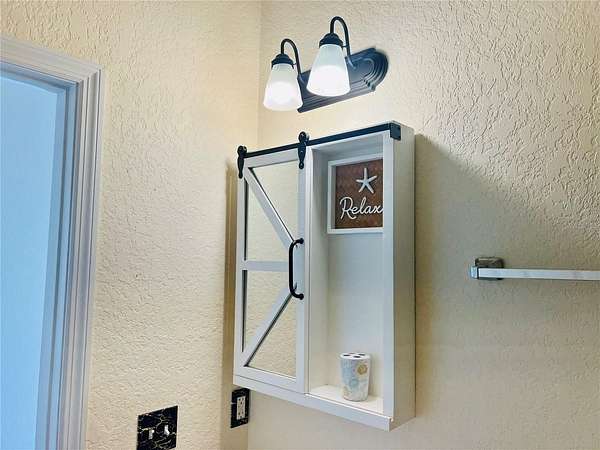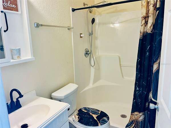 The property includes a beautifully furnished 384 sq. ft. Grande Suite with a spacious layout designed for comfort and function. The kitchen features a full-size refrigerator, solid surface countertops with matching backsplash, a large island with storage, and a striking chandelier with retractable fan blades as its centerpiece. The full bath offers a walk-in shower with an upgraded shower head, and the back storage area provides a blank canvas with ample space, a tankless water heater, and plumbing for a washer/dryer.