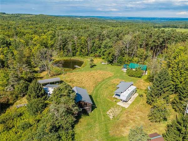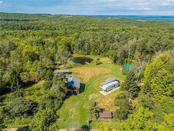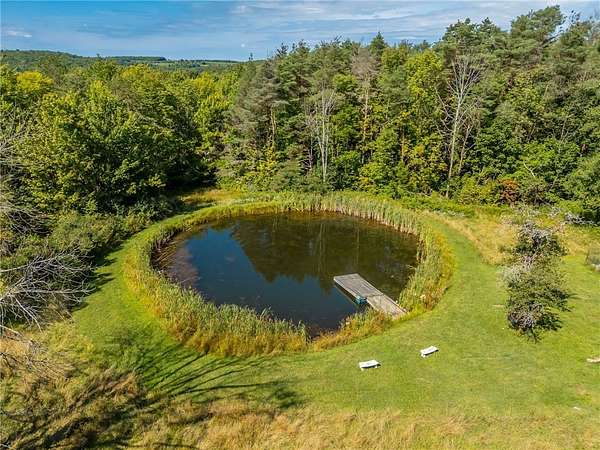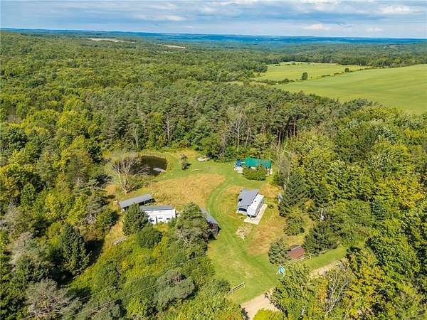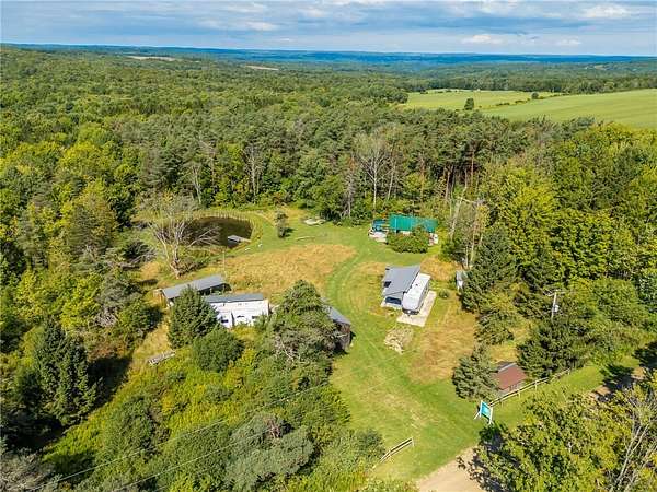 Welcome to a one-of-a-kind 59-Acre recreational retreat in scenic Fillmore, NY. This property is a haven for outdoor enthusiasts, featuring miles of ATV and hiking trails, exceptional hunting and fishing opportunities, and endless possibilities for year-round recreation and adventure. Current lodging offered onsite includes a seasonal 24'x24' 2-bedroom loft style cabin featuring an open-concept layout with thoughtful amenities including laundry, full kitchen & appliances, cathedral ceilings, and a 16'x24' deck with sliding glass doors in the front. A heat source could be added for year round enjoyment. There is a 100Amp service with a 20Gal hot water tank along with a septic system. Utilities connected onsite are Electric & Internet/Cable, with Fiber Internet available at the road for upgrade. The Pond is stocked with Largemouth Bass, Bluegill, Catfish, and Minnows. Personal property can include an existing 2011 Greystone 33' camper with double bunk rooms and two restrooms. Additionally, a 2009 Hampton Crossroads 38' camper featuring 2 beds and 1 bathroom. In past years this site has produced the owners income from AirBnb rentals and could offer 5-10x the income in coming seasons. The property is located only 15min from Letchworth State Park, 20min from the Swain Ski Resort, and 22min from Rushford Lake to name a few nearby attractions. The property is unencumbered by zoning codes leaving a new owner with the ability to dream up and build just about anything on site. Whether you're seeking a family getaway, income producing short-term rental campsite, or a private paradise to get in touch with nature, this property is packed with possibilities.