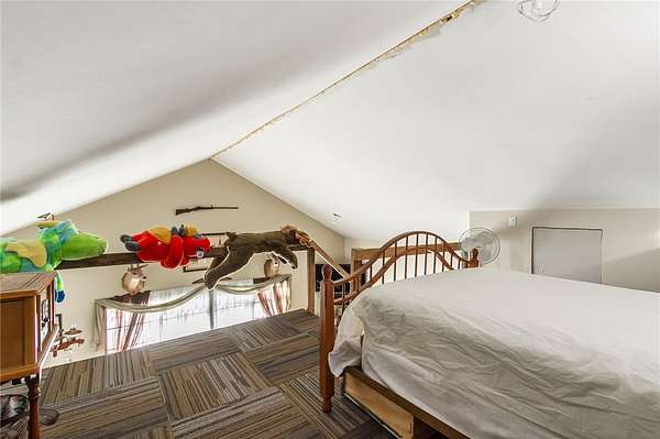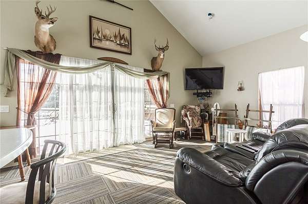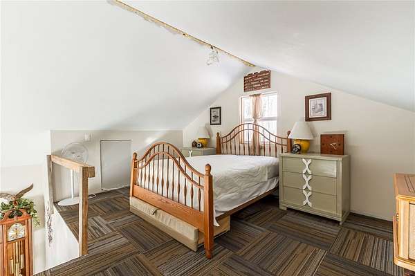- Cathedral Ceilings, Ceiling Fans, Dining Area, Eat In Kitchen, Loft, Main Level Primary, Programmable Thermostat, Solid Surface Counters, Window Treatments