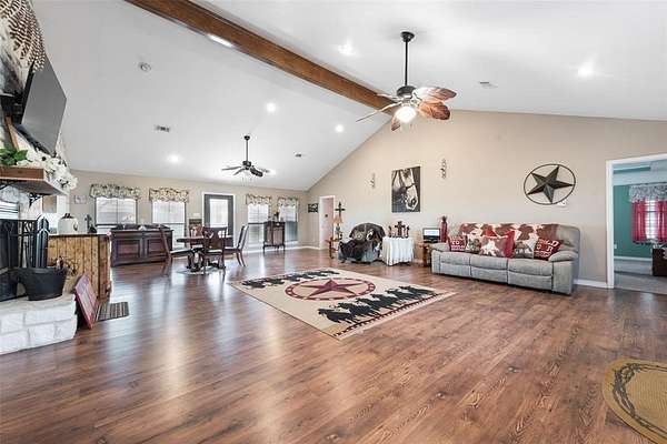 Discover a unique opportunity to live, work, and play all in one place. This spacious 3-bedroom, 3-bath home offers approximately 2700 square feet of comfortable living space with an open-concept layout, a large living room, and a kitchen featuring granite countertops. The primary bedroom offers both style and function, includes an en-suite bath, perfect for relaxing after a full day with a jetted tub. Home has walk in closets, front and back covered patios and is already wired with a security system. INCLUDED on the expansive 27+ acres is an income-producing, fully operational daycare business in separate, completely equipped buildings totaling approximately 6,200 square feet with furnishings, beds, toys, kitchen equipment plus much more. Every feature--from the included furnishings to the playground setup--is ready to go. For those wanting to enjoy the great outdoors, you'll love the two ponds (one complete with a pier and aerating pump), a 54 x 50 square-foot barn with concrete flooring and ample outdoor storage and 22 ag exempt acres. A two-car carport and three-car carport with RV hookup and electricity offer plenty of room for vehicles and toys alike. Two driveways allow for easy entrance and exit, while the covered front and rear patios on the home invite you to relax and enjoy your surroundings. This property is truly one-of-a-kind. For more information on the business see MLS #20947371