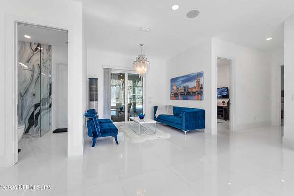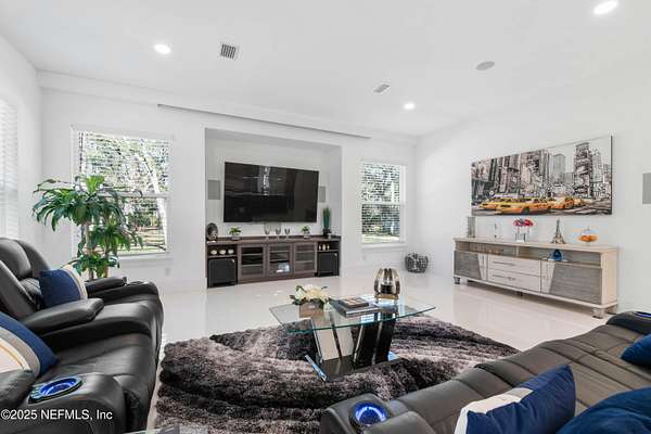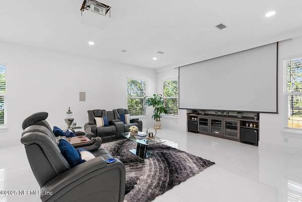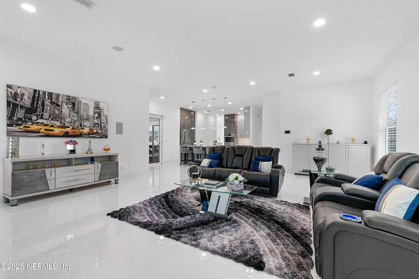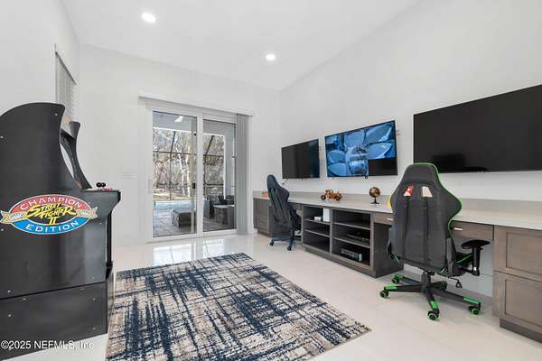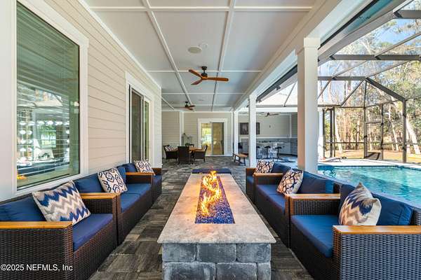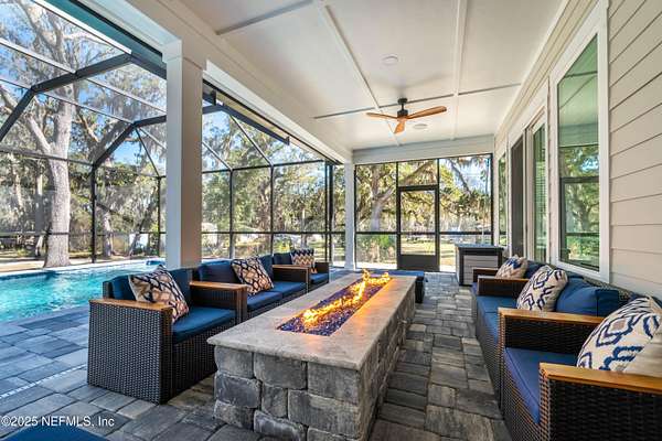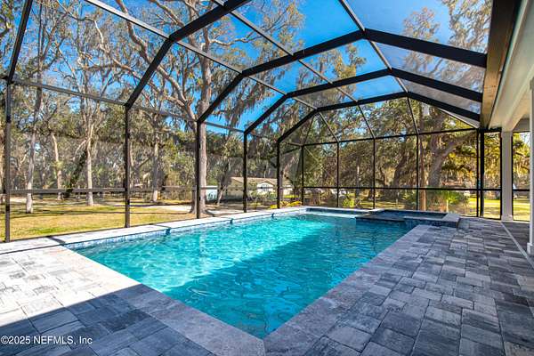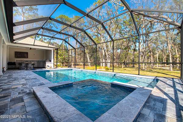 Stunning, Custom-made, 4-Car Garage, modern POOL home sitting on 2.5 acres in a desirable quiet neighborhood with NO HOA fees! No details overlooked in materials, quality and workmanship! Fenced for Privacy- This pool home features porcelain tiles throughout, modern kitchen with Bosch appliances, quartz countertops, spacious bedrooms, theatre screen with surround sound throughout the home, exquisite master bedroom bathroom suite! So many great features! Walk out to the screened pool with an outside kitchen and bar-b-que area, and modern gas fire pit - you'll love have family gatherings. Got lots of cars? You've got the space! 4-Car garage, RV parking with water hookup, and plenty of space for your boat as well. You'll find that this 2.5-acre property will fit all your needs. The video surveillance equipment will stay.