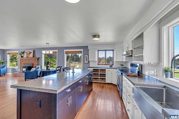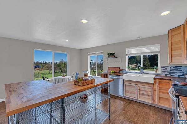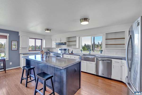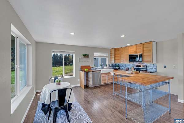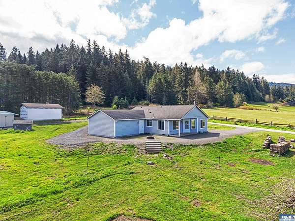 Shy 8 ac -Rare multi-gen, farm-to-table lifestyle in May Valley! 2 homes with 7bd/5ba, ideal for flexible living, rental income, or extended stays. The farmhouse blends charm & modern updates including bamboo floors, concrete counters, farm sink, woodstoves & tons of light. Primary ensuite features heated tile floors & a one-of-a-kind antique vanity & the guest bath is fully remodeled. The Guest house enjoys its own driveway for added privacy. Metal roof for longevity. Move in ready & all appliances stay. Outside, explore: pastures, gardens, orchard, small pond to attract waterfowl, nearby creek + multiple outbuildings. Historic dairy barn perfect for gatherings, livestock or RV storage. 3 garages provide ample space. Private setting, treed on 2 sides. Easy access to DNR trails for horses & hiking, just 8–10 mins to downtown Sequim dining, shopping, golf & The Olympic Discovery Trail. Equipped with a farm stand to sell your produce & cider! Come experience the good life in Sunny Sequim WA!