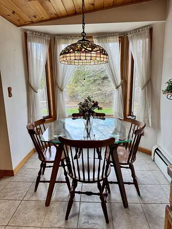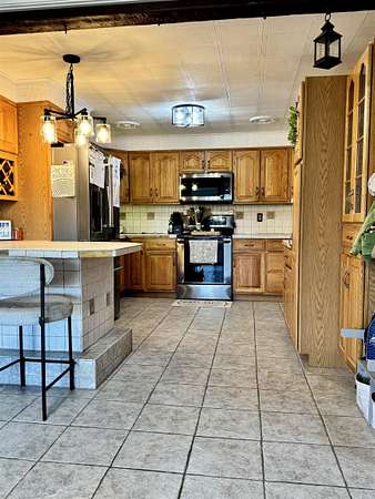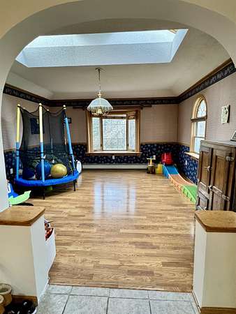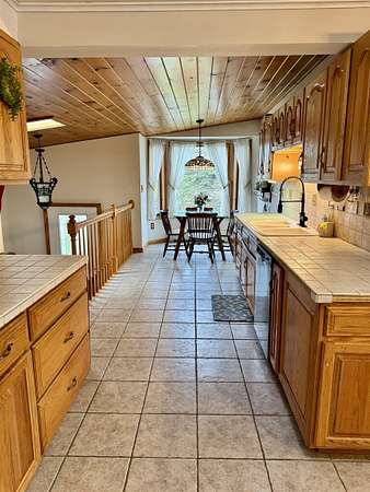 This home is a must see! The current owner has lovingly updated so much in this house. The primary bedroom has sliding glass doors out to the fenced in pool and hot tub area, new tongue and groove ceiling and an electric fireplace add a special touch. You'll appreciate the extra-large primary walk-in closet with laundry hook-ups and nicely updated primary bathroom. The former laundry room was converted into a 4th bedroom. The other two bedrooms and the hall were also updated. The large kitchen has been freshly painted and offers newer appliances and storage galore. If you like to entertain, wait until you see the basement in this house! Three quarters of this basement is fun space. You'll find a wet bar with stools and raised seating with tables and chairs. There is a wood burning stove that keeps the space nice and cozy as well as a half bath, so your guests won't have to run upstairs. Pop in a sleeper sofa and it is a nice place for guests to stay. Last but not least, you can relax in the sauna after a long day. The current owners had a high efficiency propane boiler with on demand domestic hot water installed. The roofs on the house and garage have all been replaced. If you are handy or have a lot of toys, cars, motorcycles, and such, you'll love the 3 garages with parking for 3 plus vehicles. Finally, the large back yard is awesome and includes a fort and swing set for the littles. Give us a call to see this wonderful house with all its unique amenities!