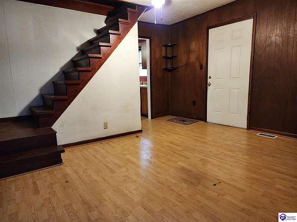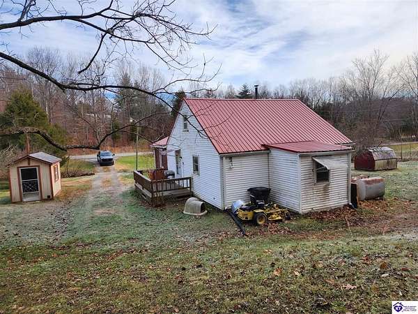 Est $723/mo2 bedrooms on main level with 3 bedroom in upstairs attic area. Wood floors throughout most of main level. Small stream in front, open area around the home, and wooded to the rear. The old mobile home is not livable, but could potentially be replaced with a newer one or removed and the septic & water hookups could be used for a garage/shop building. Rural setting just 1 mile off of both US-62 & BG PKWY.