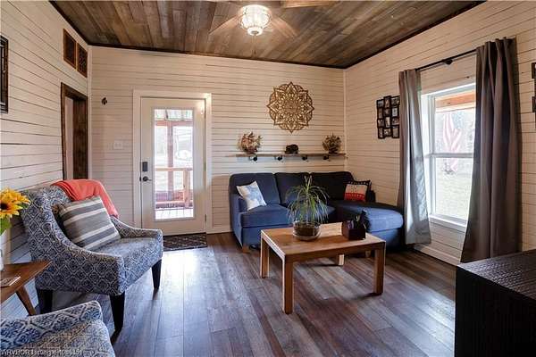 Built in 1900, this one-of-a-kind property originally served as the home of the Rock Island Railroad Depot, once the hub for the mainline running through Mansfield. Rich in history and character, the property has been thoughtfully brought back to life with extensive updates while remaining true to its original era. The owners carefully repurposed materials from the home and outbuilding, incorporating them into custom shelving and accent walls throughout, preserving the authenticity and craftsmanship of the time. Situated on approximately 5 acres, the home has undergone significant improvements including a new roof (2021), new subflooring throughout with a vapor barrier, updated electrical wiring with a new electrical panel (2021), PEX plumbing, and a tankless water heater installed in 2021. The HVAC system was replaced in 2020 by the previous owner. Double-pane Energy Star windows and new interior and exterior doors enhance energy efficiency and comfort. The interior features commercial-grade luxury vinyl plank flooring on the main level and new LVP on the second floor. The kitchen has been updated with new cabinetry, butcher block countertops, a black stainless refrigerator, and a double oven (2021). Bathrooms have been updated with new toilets and showers. A walk-in attic provides additional storage space. Exterior improvements include new engineered wood siding and a newly constructed porch with power. Additional property features include a workshop with power, a three-bay carport, window screens available, and ample space for hobbies, storage, or expansion. EXCLUSIONS: Headboard in master(attached to wall) Exterior cameras Knife storage mounted under kitchen cabinet Window seat and my desk upstairs (both are free standing, just ensuring this is clear) Mounted grow shelf on second floor Microwave (not built in) Lights on the back porch. (We will leave the ones on the side nook for them) Little reading lights in the eaves upstairs (negotiable)