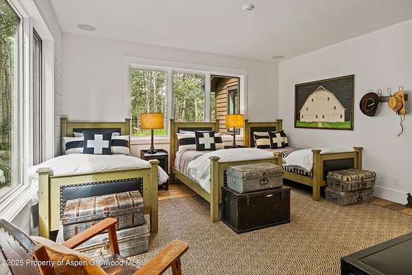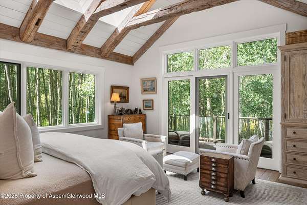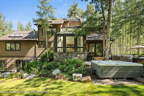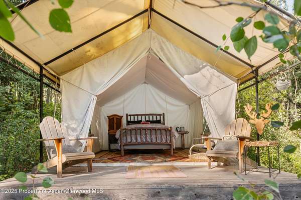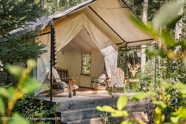 This is a true legacy property in Aspen checking all of the boxes for a rare and valuable piece of real estate. Discover the privacy of this extraordinary 21-acre property along Castle Creek, where aspen groves and open views create an exceptional natural sanctuary. This fully remodeled 5-bedroom 4,954 square foot mountain residence, designed by renowned Galambos Architects, offers tranquility in an unmatched natural setting. Bordered by White River National Forest, this flat, usable acreage provides endless recreation opportunities. Meander through aspen groves to a private glamping tent, or unwind in the hot tub surrounded by natural beauty. Enjoy the zipline or challenge each other at the axe-throwing area. Direct Castle Creek access offers fishing and cold plunge opportunities. Multiple outdoor seating areas adjacent to the house invite year-round enjoyment, including two fire pits for evening gatherings, an outdoor dining table and comfortable front porch seating for the spit and whittle club. The main floor features the living room and den with a wood-burning fireplace, gourmet kitchen, a spectacular glassed-in dining room that brings the outside in, and the primary suite. The upper level office overlooks the Aspen grove, providing an inspiring work environment with fiber optic internet for productivity. In addition, the upper level features two bedrooms, two bathrooms and a private deck. The lower level creates an entertaining hub with a media room, bar, game room, and two guest bedrooms that walk out to outdoor spaces, maximizing natural light and easy access to nature. Nine miles from the roundabout gives quick access to Cathedral Lake, American Lake, and Conundrum Creek trailheads, plus Ashcroft Nordic skiing and backcountry adventures toward Pearl Pass and the Alfred Braun Hut System. Your drive to Aspen follows the serene Castle Creek corridor through some of Colorado's most beautiful terrain. This private mountain compound offers the perfect balance for all that Aspen has to offer while offering the beauty, peace and quiet that draws us to the mountains of Colorado. Don't miss this special opportunity!