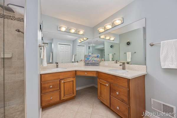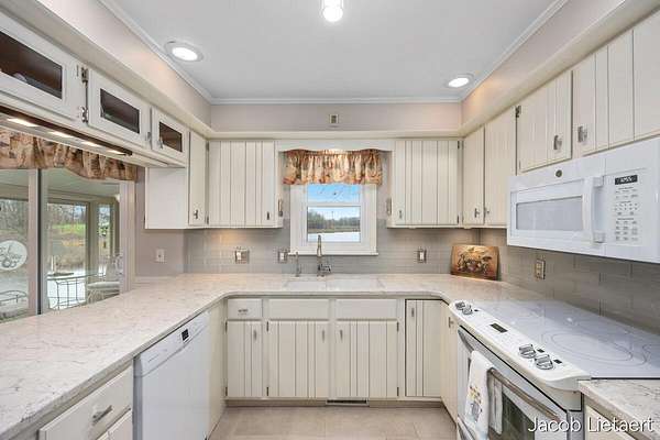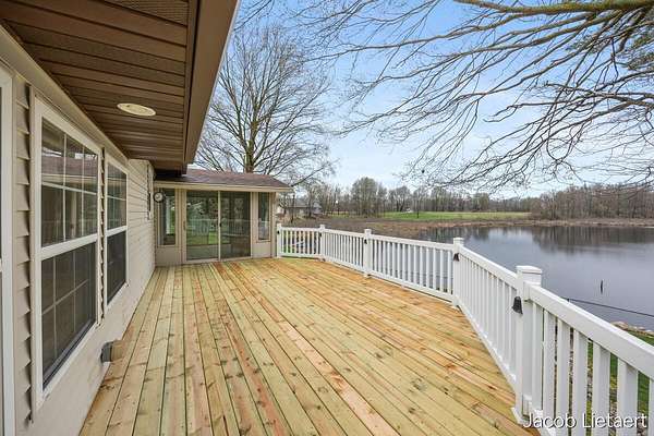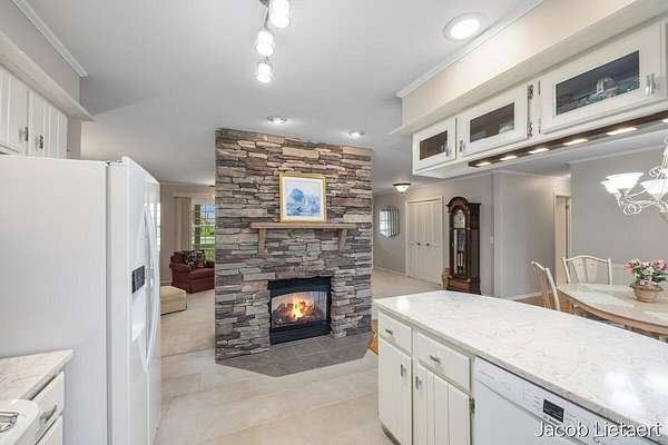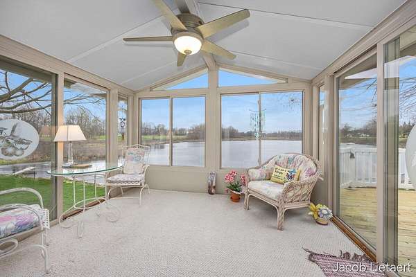 Enjoy year-round recreation at this beautiful property: swim, paddle board, kayak or fish in the summer & ice skate or play hockey in the winter! Pride of ownership is apparent in this 3 bedroom (2 primary suits), 3 full bath walk-out ranch w/ a long list of high end upgrades. Insuring life long privacy this home & outbuilding sit on approx. 2 acres overlooking the scenic lake & wetlands (12 acres). Inside relax by the dual sided fireplace or in the 3-season room listening to the waterfall & wildlife. Gather on the deck or stamped patio w/ built in fire pit for S'mores! The outbuilding features a 2-stall garage & heated/insulated workshop/office w/ 220v power. Updates include 2026 deck, main floor paint, 2022 Generac whole home generator, kitchen quartz counter-tops & porcelain tile floors, 2014 suite w/ heated title floors, tiled shower, soaking tub, dual vanities & walk-in closet, triple pane windows, HVAC, roof & gutters/downspouts. Located across from Lone Tree equestrian stables!