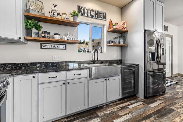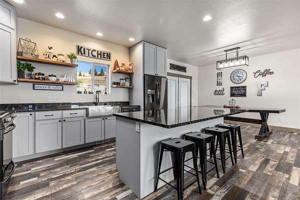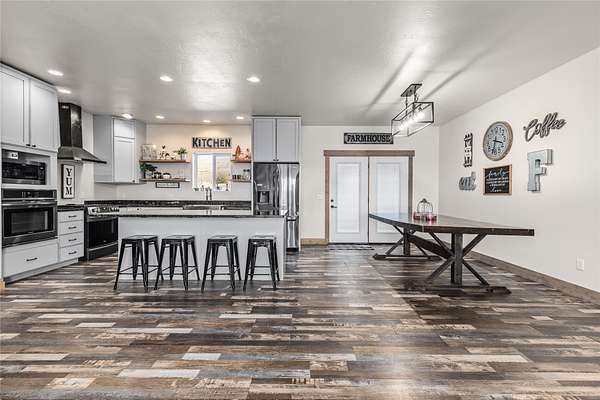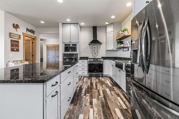 Discover stunning modern comfort at 9558 Shikane Ln in Missoula! Built in 2021, this spacious 5,244 sq. ft. home offers 6 bedrooms, 3.5 bathrooms, and exceptional design for versatile living. The main floor features a gourmet kitchen with granite countertops, gas range, wall oven, walk-in pantry, and stainless steel appliances. The inviting living room includes a gas fireplace, while the master suite offers patio access, a walk-in closet, dual-sink vanity, walk-in shower, and a freestanding tub. The full walk-out basement is ideal for multi-generational living with its own kitchen (electric range, dishwasher, refrigerator), spacious living area, washer/dryer hookup, and access to a large patio with extra parking. Upstairs, a bonus room above the garage provides additional flexible space. Natural gas forced air furnace, on-demand water heater, and a passive radon system. Outdoors, enjoy hot and cold water hookups, a patio wired for a hot tub, natural gas for BBQ/fire pit, and underground sprinklers. A unique opportunity includes an additional 2.54-acre lot with a 10+/- GPM well available for $295,000, perfect for expansion or investment. Bring your animals, horses allowed! Great location, minutes from Missoula! Located in the Frenchtown School District.