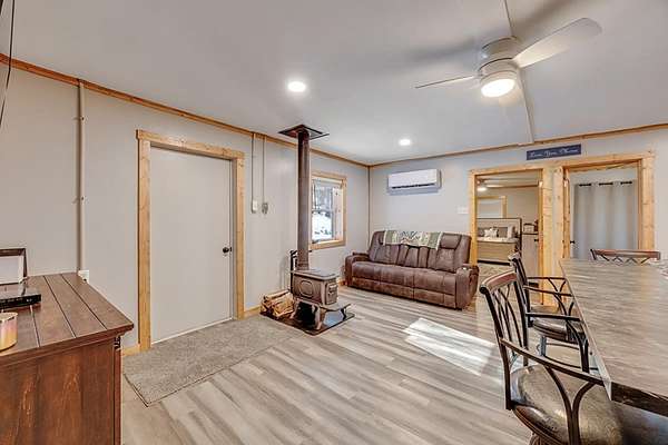 Tucked away at the end of a dead-end road, this secluded pole barn home on 14.8 acres offers exceptional privacy and peaceful surroundings. The home features 3 bedrooms, 1 bath, a cozy wood-burning stove, newer appliances, and fiber optic internet, combining rural charm with modern convenience. The property includes a pond, barn with electric and partial concrete floor with lean-to, a scenic creek, and a beautiful historic stone wall. Ideal for a hunting retreat, weekend escape, or full-time residence with a potential building site at the top of the driveway. This is a rare find, schedule your showing today.