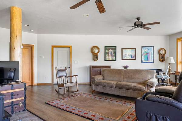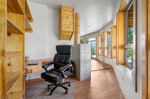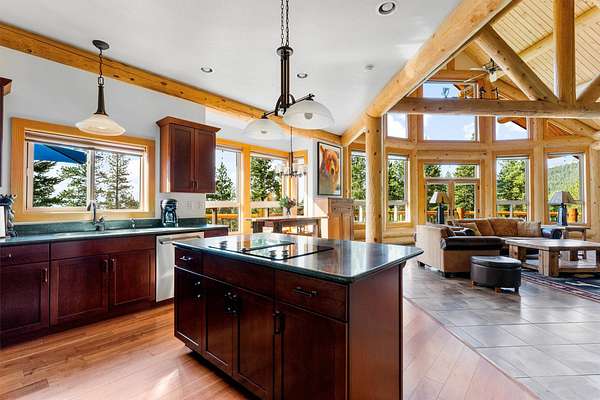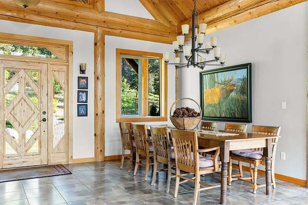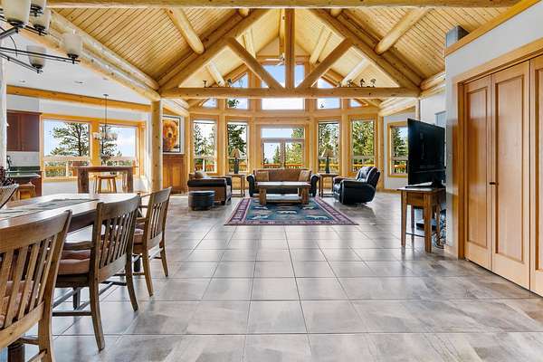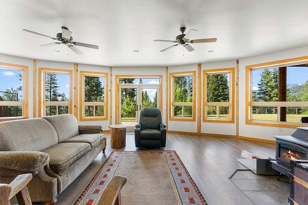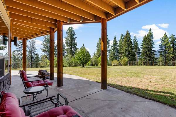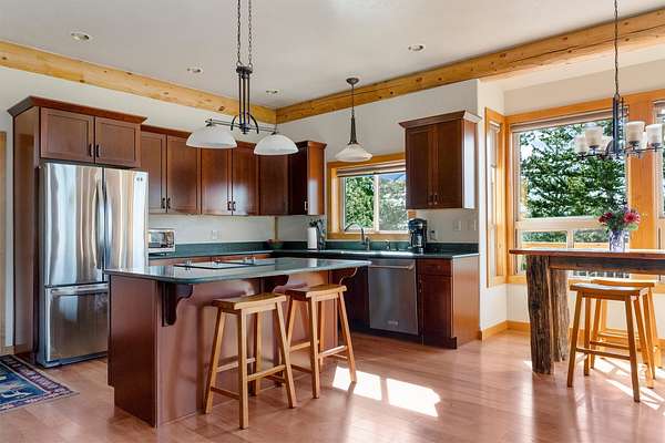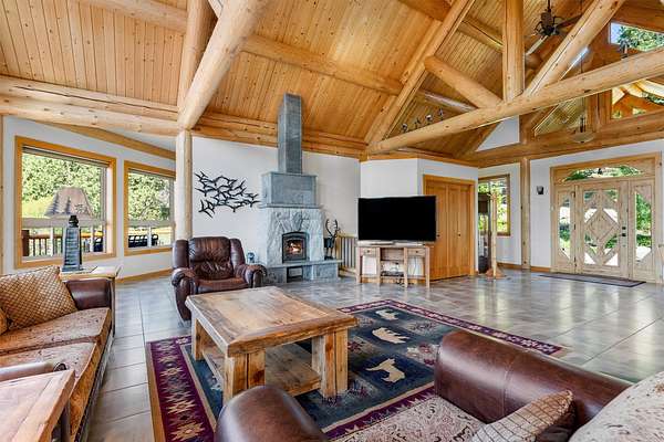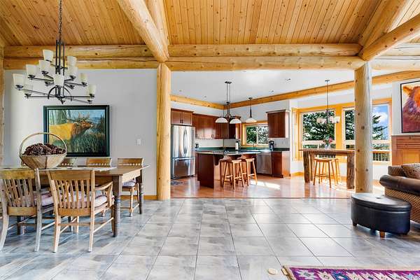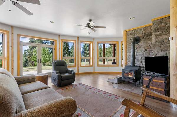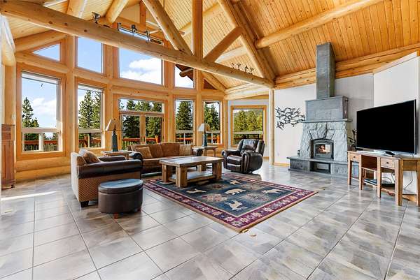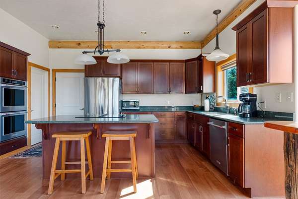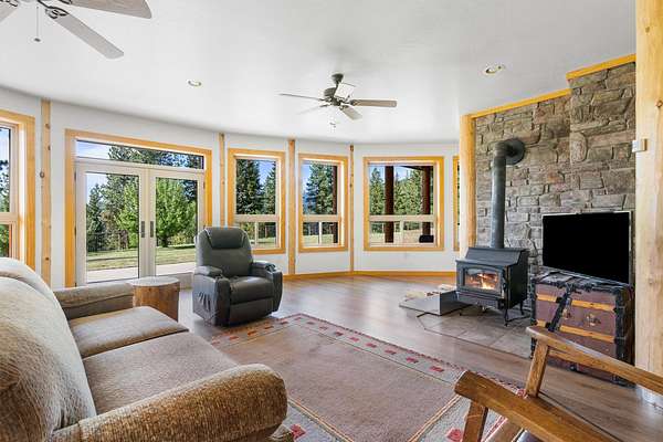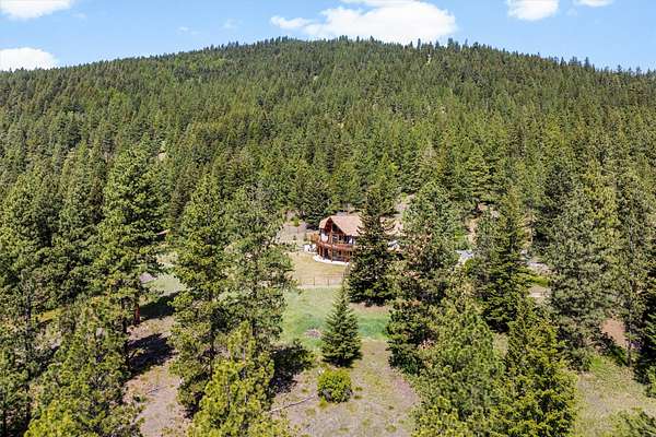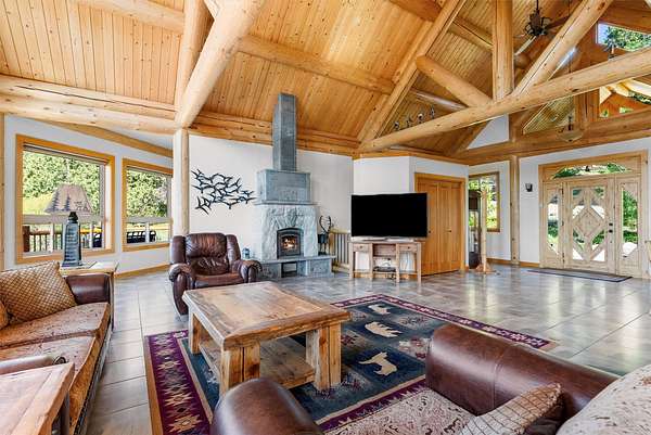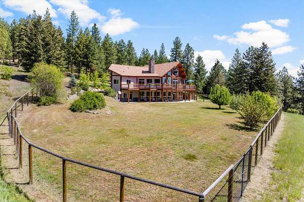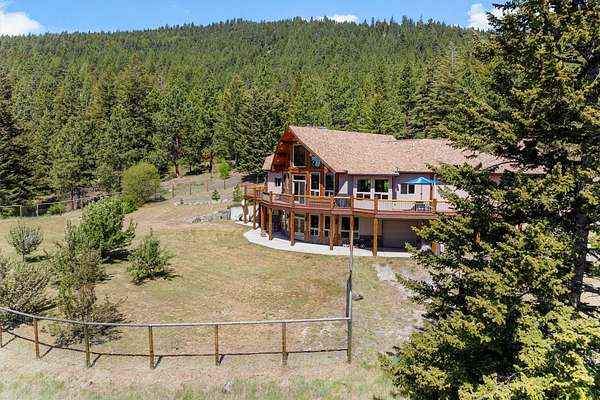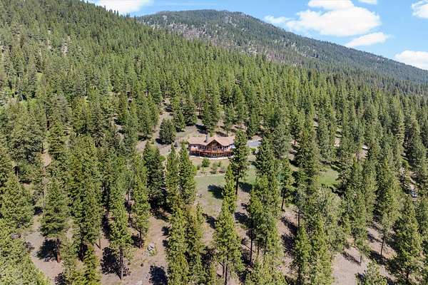 Tucked among towering pines and backdropped by the majestic Bitterroot Mountains, this stunning custom-built post and beam home sits on an expansive 95+ acres just a short and well maintained 10 minute drive west of Victor, Montana. Offering ultimate privacy, serenity, and uninterrupted panoramic views, this extraordinary property is bordered by Forest Service land to the north and west, and protected conservation easement land to the south-ensuring your views and peace of mind remain forever untouched. Designed with masterful craftsmanship and rustic sophistication, the 3,270 Sq. Ft. residence features intricate wood detailing, king log trusses, and a striking fusion of ceramic and wood flooring optimized for in-floor radiant heat. Vaulted cathedral ceilings and expansive windows flood the main living space with natural light, creating a passive solar design that enhances warmth and efficiency year-round. At the heart of the home is a hand-crafted sandstone Tulikivi fireplace, radiating both heat and character through the living area and adjacent main floor bedroom. The chef's kitchen is as functional as it is beautiful, boasting rich cherry wood cabinetry, forest green Silestone countertops, a central island with eating bar, and a spacious walk-in pantry. The main-level primary suite is a private sanctuary featuring a spa-style bath with custom tile shower, dual vanities, and generous walk-in closets. The walkout lower level offers additional living space with a large family room, second bedroom, a third non-conforming bedroom or den, and a convenient kitchenette-perfect for guests or multi-generational living. Step outside to a sprawling deck with an awning, ideal for outdoor entertaining or quiet mornings with sweeping valley views. The land itself is a haven, complete with two small ponds, fruit trees (apple, pear, cherry), forest service trail access, and one of the valley's highest-producing wells. A 3-car garage, asphalt driveway, and recent upgrades-including a new roof, freshly painted exterior, and sealed beams-ensure the property is move-in ready and built to last. Additional features include a 400-gallon cistern, comprehensive fire suppression system, and inclusion within the Victor Fire Protection District-providing peace of mind in this remarkable, self-sufficient retreat. This is more than a home-it's a rare legacy property where Montana rustic charm meets refined comfort. Starlink internet is installed and ready for your high speed internet. Also offered for sale as 115+ acres for $2,495,000 see MLS 30050669