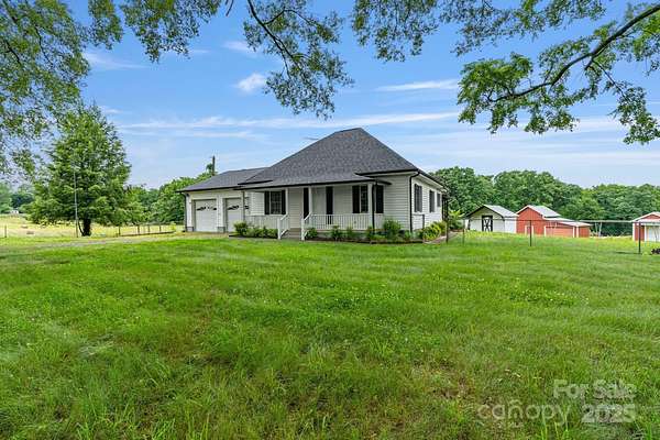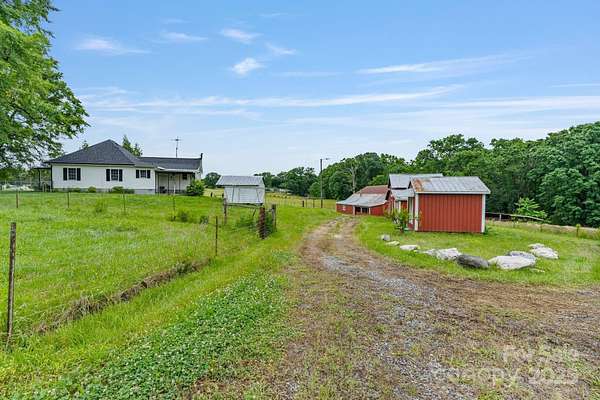 Welcome to The Rooted Pastures Estate - sitting on over 56 acres! This land is rich in history and was once a working farm known to many. The land has had NO chemicals, NO herbicides and NO pesticides utilized on its grounds in over 13 years. Property features an adorable renovated 2BR/2BA charming farmhouse with attached 2-car garage. With a total of 6 outbuildings, bring your animals and make this farm your home! Farm previously houses vegetarian-fed & free range pigs, sheep, grass-fed cattle & 100% grain free eggs from pastured hens. There are 2 large barns located on the land that can be used for events, equipment storage, horses or additional uses! The Rooted Pastures Farm was also recognized as an FDA-approved chicken processing facility in 2022! Fenced pastures, additional outbuildings, and building landscaping and rolling hills make this land beautiful and serene in an ever-growing area. Centrally located near Shelby, Gastonia & Kings Mountain - this location is TRULY unbeatable. Subdivision is allowed. County water & well. Newer well pump. No septic permit on file. Newer shingly roof and covered front porch. Kitchen features wooden countertops with new stainless steel appliances.