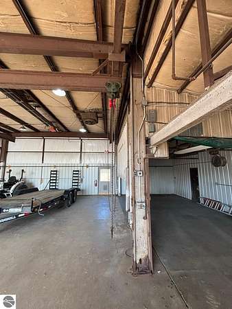 Start your business or expand with this perfect location that has over 500' of US-131 frontage. Offering office space, heated shop space that includes a chain fall crane on tracks that runs the full length, a Quonset hut for additional storage or work space and you are off and running. The property is also 6 acres, bordering N Wheeler Lake Road on the East side, giving ample room for growth/additional buildings. Remodel in 2015 including new tin on both buildings and office reconstruction. The RV in the Quonset hut is 30', giving an idea of how much storage is available. There is a natural gas line on the West side of the highway. Or just use the heated shop and Quonset hut (not heated) for storage, ready to go! Less than 20 minutes from Torch River Bridge.