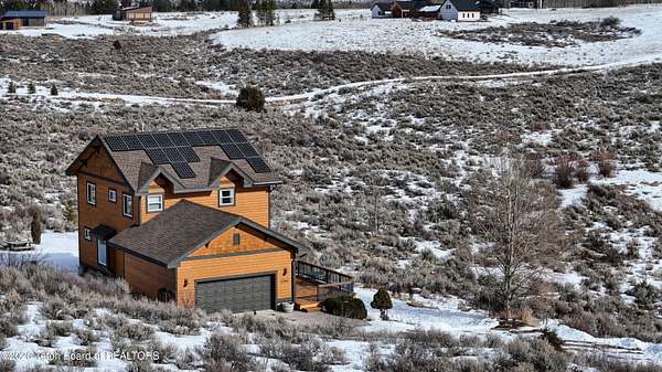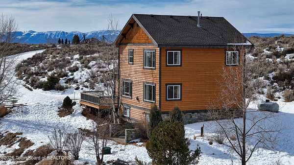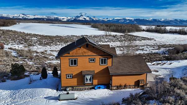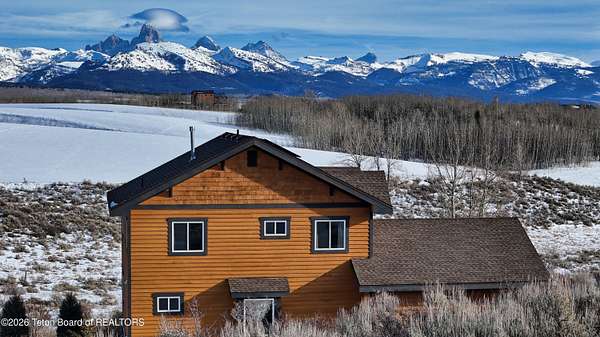 This Mountain View Drive home boasts a feeling of privacy not often found on the market. This well-situated hillside home with sweeping full-range Teton views sits on 4.44 acres. It features 2,688 sq ft of living space with 3 bedrooms and 2 full baths thoughtfully located upstairs for privacy, all featuring new quartzite counters. The main floor includes fully updated kitchen appliances w/ oak cabinets and granite countertops, a double oven, a dining area with a bay window seat, a living room w/ oak floors and an oak mantle wrapping the gas fireplace, a separate laundry room, and a half bath. Downstairs is a large sunny walk-out finished basement family room with large tile flooring. You will appreciate many energy-efficient and comfortable features, including eight-inch exterior walls. The newer two-tone commercial-grade cedar siding was freshly re-stained in 2024. Thoughtful exterior finishes continue with Montana ledgestone wainscot rock features across the foundation and patio walls that wear well in winter and reduce maintenance costs. The new redwood deck facing the Tetons lets you enjoy a full-range view, including groves of aspen and mature landscaping, along with a wraparound lawn. This property is a peaceful place to enjoy in the summer and to cross-country ski right out your door in winter. For added energy efficiency, this home offers 16 roof-mounted solar panels that supplement monthly electricity needs along with a two-bay attached garage. There is real value in the recent upgrades installed by the current owners, including a brand-new asphalt shingle roof, a well pump, a water filtration system, and a furnace and water heater. Enjoy proximity to Grand Targhee Resort, the Teton River, Grand Teton National Park, Yellowstone, Jackson Hole, and thousands of acres of National Forest.