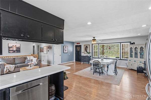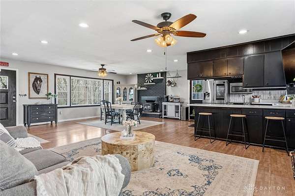 - Ceiling Fans, Fireplace, Kitchen Family Room Combo
