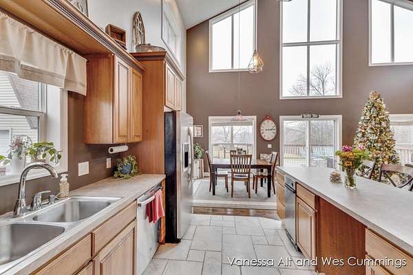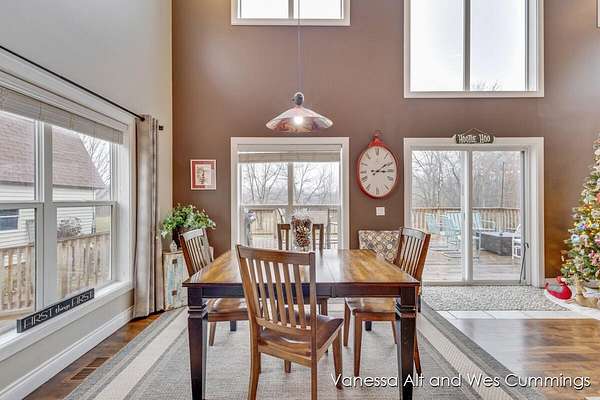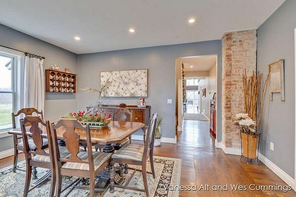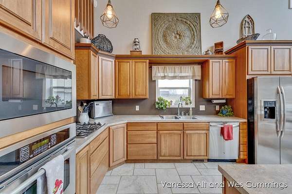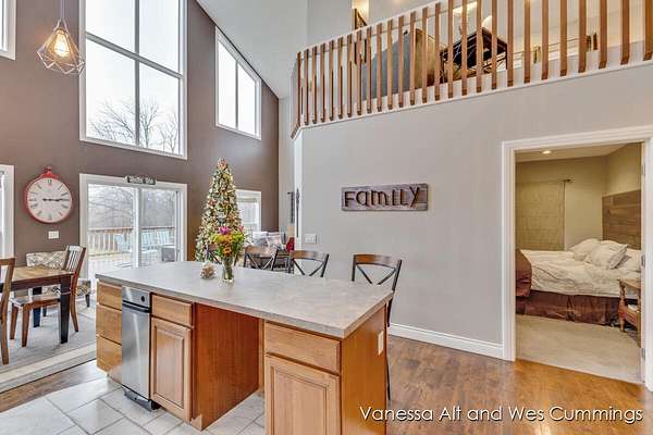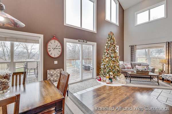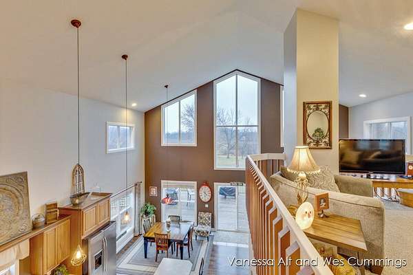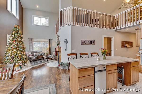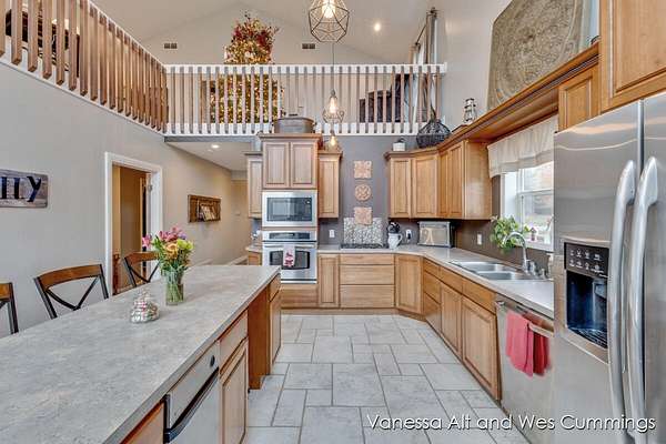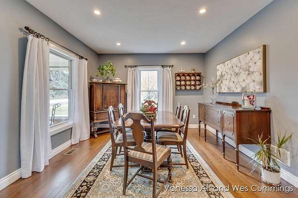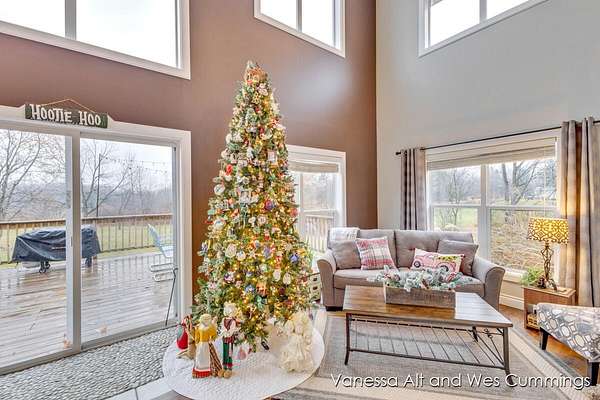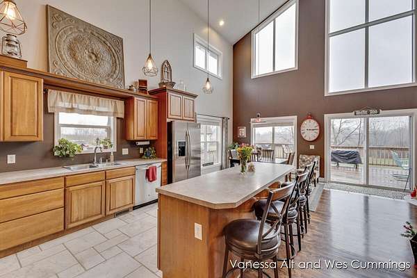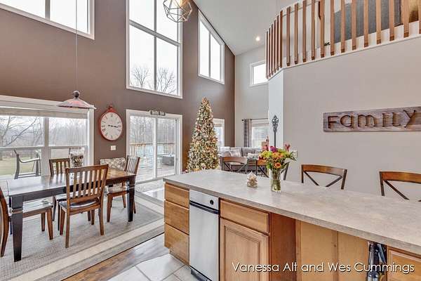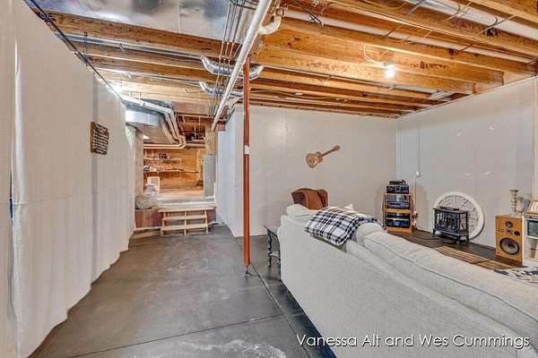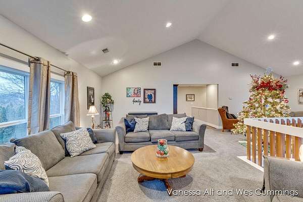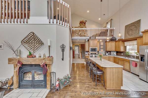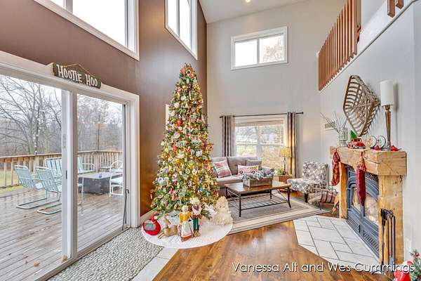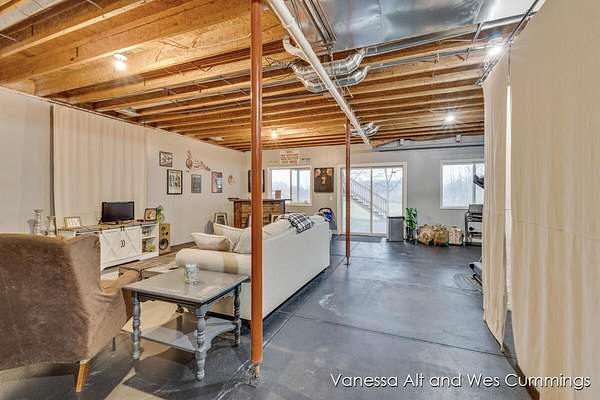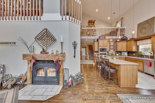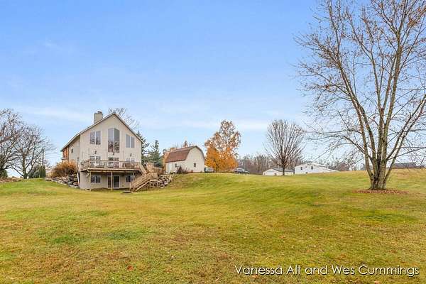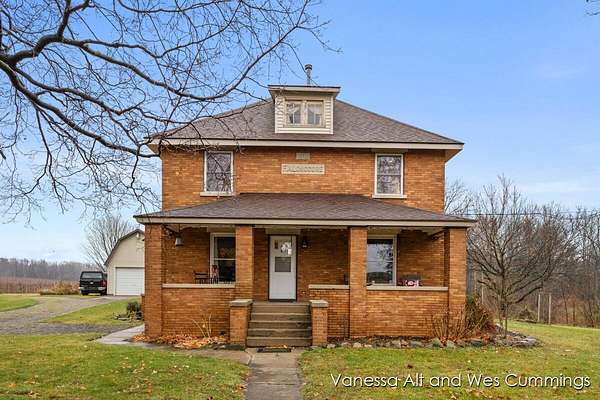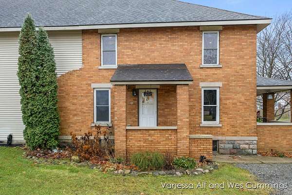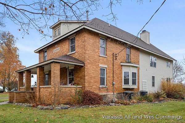 Stunning meticulously maintained 1914 farmhouse that perfectly blends timeless character with modern comfort. This updated home features a spacious main-floor primary suite complete with a jacuzzi tub and an enormous walk-in tiled shower. The main living room offers warmth with a wood-burning fireplace, & views of the surrounding orchards. The spacious great room overlooks the lower level while the downstairs offers additional finished space and walk-out to the tranquil yard surrounded by orchards with a creek and pond. Enjoy the Climate control with two furnaces and two AC units for optimal year-round comfort. Outside, the 60x80 outbuilding-equipped with electric, heat, and water-delivers exceptional versatility for storage, hobbies, or a workshop.