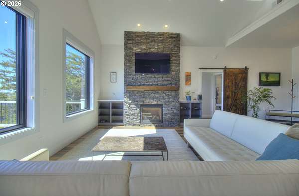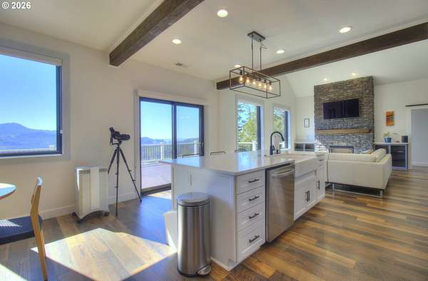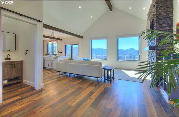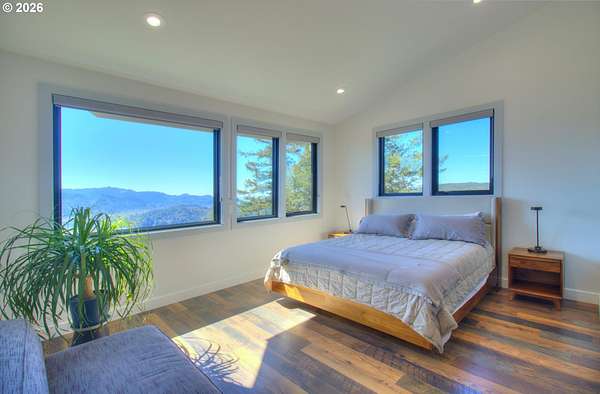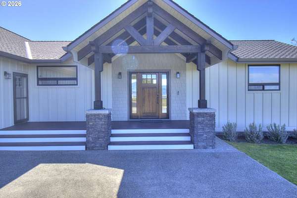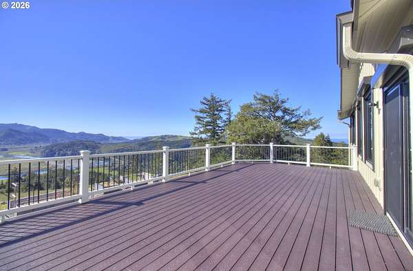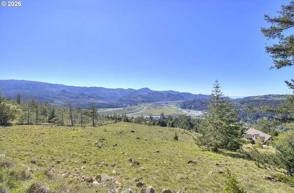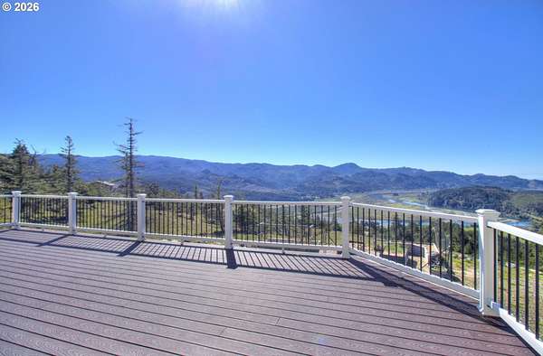 Perched above the Rogue River with stunning river and ocean views, this 3-bedroom, 2.5-bath home offers beauty, privacy, and peace of mind. Enjoy a warm microclimate often 10 degrees warmer than town. The spacious 5-acre parcel offers room to roam while being just 10-15 minutes to the river, beaches, and the heart of town. Inside, large picture windows flood the upper level with natural light and frame breathtaking views of the Rogue River. The open-concept living area leads to a generous deck, perfect for entertaining or simply soaking in the scenery. Situated outside of flood, tsunami, and fog zones. For added peace of mind, a propane-powered generator with an automatic transfer switch provides seamless backup power during outages. New storm shutters installed summer 2025. The downstairs is nearly finished and offers an excellent opportunity for an additional living space, guest quarters, or a potential bedroom and full bathroom tailored to fit your needs. This rare combination of beauty, location, and practical resilience is a must-see. Be sure to check the virtual walkthrough tour link of the home!
