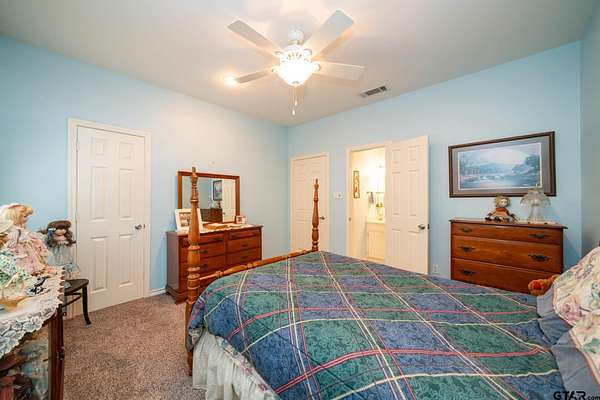 From Hwy 69 & Hwy 79 intersection in Jacksonville, take Hwy 79 West (towards Palestine), go three blocks to the red light. Take a left onto Bolton St. Go 1.8 miles down Bolton. House is on the right, corner of Bolton and CR 3103.