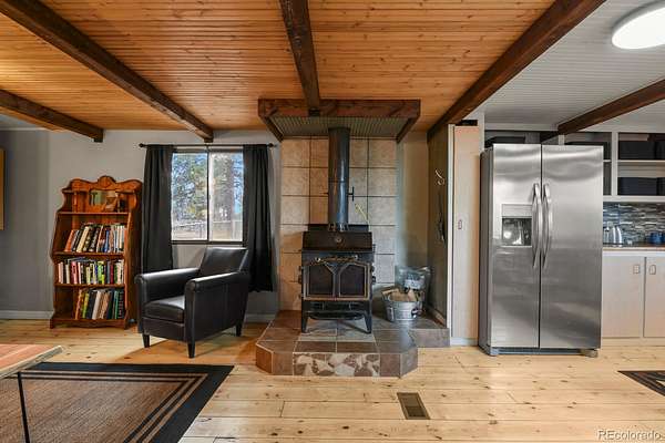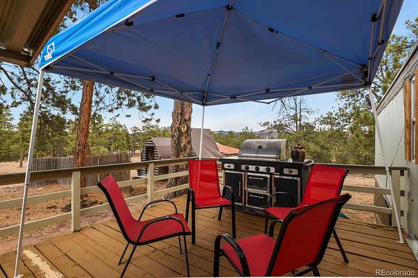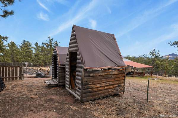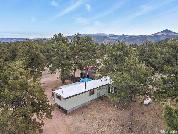 Your Colorado mountain retreat awaits! Nestled on two beautiful acres with a gentle mountain backdrop (and a Pikes Peak view!), natural rock outcroppings, and peaceful surroundings, this inviting home blends updated comfort with a true sense of simplicity and ease. The home has been mostly updated and comes with some furnishings and housewares so you can move right in and start enjoying mountain life. The kitchen offers stainless steel appliances, refreshed cabinets and countertops, and a kitchen island with a pot rack. The wood burning stove for chilly mountain evenings comes with wood to get you started. There are two bedrooms and one full bath, wood floors, as well as a top-notch whole-house water softener and filtration system. Outdoors, relax on the covered deck, take in the fresh mountain air, or explore your two acres of peaceful land accented by trees and rock outcroppings. You’ll love the three carports, storage sheds, and circular driveway with easy access and plenty of parking. No HOA means the freedom to create your mountain lifestyle your way—whether full-time living, a weekend getaway, or a furnished rental opportunity. Come see the view, feel the peace, and make this affordable mountain gem your own.