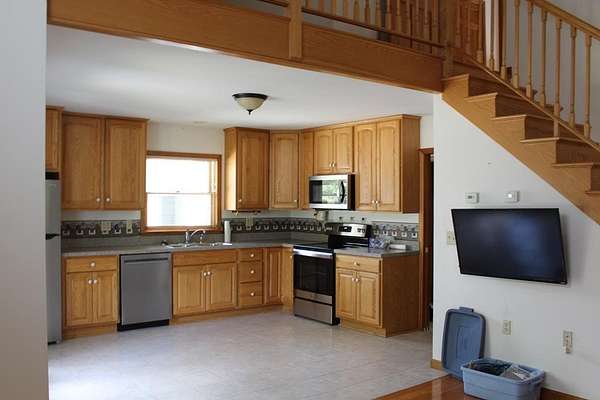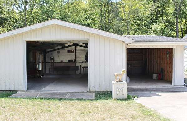 Est $1,890/moBeautiful custom built home with lots of natural sunlight, open floor plan & oak woodwork throughout! 2 Bedroom, 2 Baths with a loft area that could easily be your 3rd bedroom. The basement has a large office area with lots of extra storage for work or hobbies. There is a basement family room complete with fireplace and a walk out door that leads to the patio. There is a 3 sided covered porch that overlooks a creek with a cascading natural water fall. 3 detached garages for ALL your vehicle storage needs. There is even a workshop in the lower garage level. There is a pond on the property, All this on 7.85 Acres!!!