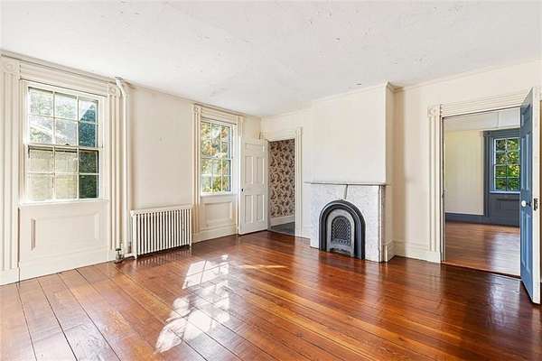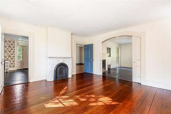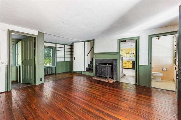 Investors and old house fans take note: located minutes away from the University of Rhode Island, historic villages of Wakefield and Peace Dale, and the beaches of South County, this property offers an existing 3000SF house and 15 subdividable acres, with exceptional potential for future development. With 3-5 bedrooms and 3-1/2 baths, the house could be used as a family home, a bed-and-breakfast, or a home for wayward University of Rhode Island professors. Behind the house is a substantial garage with a 2-bedroom, 1-bath apartment above, suitable for a guest suite or accessory dwelling unit. Built for a prominent farmer and his new bride in 1837 (with an even earlier section), the William C. Watson House is a Greek Revival-style house that emerged unscathed from the HGTV-house-renovation era. Poised for a top-to-bottom renovation, with mid-twentieth century bathrooms and a dated kitchen, the house is the perfect canvas for those looking to update a historic residence to their own taste while preserving the best of its original features, including moldings, wood floors, and mantles. Attached to the garage is a spacious barn with original horse stalls and hay loft. Zoning allows limited livestock and agricultural use, supporting both commercial and hobby farming adventures.