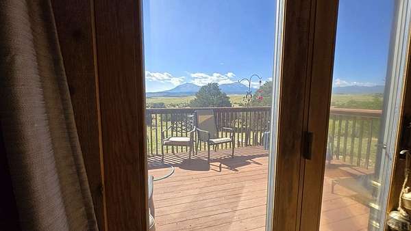 Nestled on over 6.5 acres of rolling terrain dotted with pion and juniper trees, this inviting 2-bedroom, 2-bath home offers stunning, unobstructed views of the Spanish Peaks. Enjoy quiet Colorado living with the perfect blend of comfort and nature. Step inside to a warm and welcoming living area featuring one of two wood-burning stoves-perfect for cozy mountain evenings. The inviting living space flows seamlessly to a walk-out deck that wraps around the home, offering panoramic views and the ideal spot for sunrise coffee or sunset relaxation. The open kitchen and dining area offers a friendly space for entertaining guests and loved ones. In addition, there is a large sunroom perfect for creative projects, a home office space, an additional bedroom or storage. Outside, a detached two-car garage with work area offers plenty of room for vehicles, tools, and toys. The property is partially fenced and served by a community water system and a private septic system. Located just west of Walsenburg, this property combines privacy, convenience, and breathtaking scenery, everything you want in a Southern Colorado retreat.