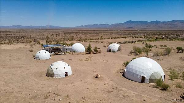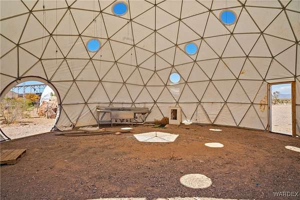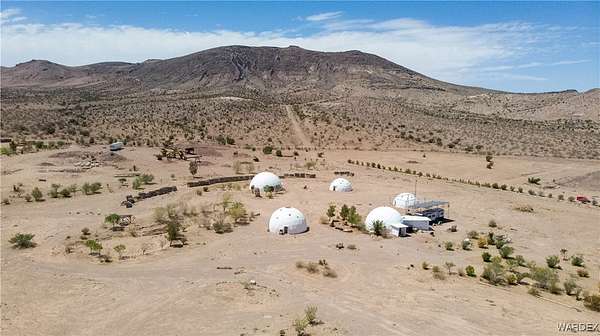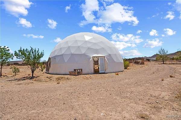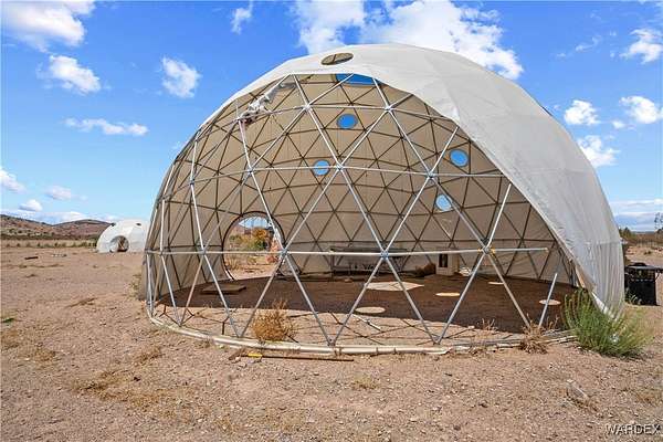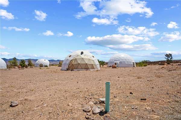 Expansive 62-Acre Commercial/Residential/Recreational Property with 6 Unique Geodesic Dome Structures & Sustainable Features! Priced below appraisal done in 2023! Welcome to an extraordinary investment opportunity in Mohave County! 4 lots being sold together for a total of 62.98 acres along Jackrabbit Road, this versatile property offers a rare combination of Commercial-Recreational (CR-E) zoning and Agricultural-Residential (AR) parcels, which may be easily rezoned based on county precedent. The site includes a permanent commercial 36 ft. geodesic dome building (1,246 sq ft) built with durable GigaCrete and ThermaShield walls, complete with concrete floors, a full bathroom, and a shower. Additional improvements include: Five temporary domes (3,747 sq ft total) with metal struts and polyurethane covers One private well on the property and access to large commercial well with 2-inch line and holding tanks already installed. Drip irrigation to every tree on the property (6) 40 ft x 40 ft built organic garden beds A well house (56 sq ft) and solar canopy (600 sq ft) An extensive solar energy system with solar panels and wind/solar-powered security cameras Complete septic system infrastructure, main geodesic dome has its own septic tank This property boasts over 600 mature trees (mostly fruit, including peach, pear, pomegranate, nectarine, cherry, olive, fig, and mulberries), fully fenced perimeters, lush landscaping, and ample water storage tanks--making it ideal for sustainable development, agritourism, wellness retreats, or a private compound. The land is level, accessible, and located outside of flood zones (FEMA Zone X), ensuring peace of mind and ease of development. Whether you're looking to expand a commercial venture, start a self-sufficient community, or invest in a high-potential recreational parcel, this one-of-a-kind property delivers unmatched opportunity. Don't miss out on this truly unique desert oasis! Perfect for retreat center, glamping site, eco-resort, intentional community and festivals. Situated in the northwestern corner of Arizona, along the U.S. 93 corridor (also known as Corridor 11) that stretches from Mexico to Canada, Golden Valley lies between the cities of Kingman, Arizona, and Las Vegas, Nevada