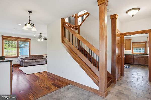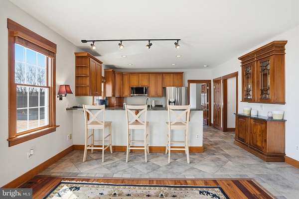 - Breakfast Area, Chair Railings, Country Kitchen, Dining Area, Open Floor Plan, Primary Bath(s), Upgraded Countertops, Window Treatments, Wood Floors