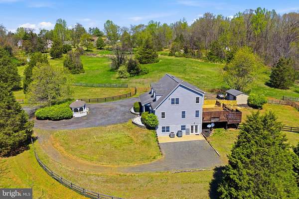 Discover your own private retreat in this custom built home on 12.91 peaceful acres in Warrenton. The property features four fenced pastures, ideal for horses or livestock, along with an additional 4.5 acres of unfenced land, and another 2 acres already cleared. A creek runs along the rear of the lot. Inside, the kitchen boasts granite countertops and stainless steel appliances. The dining room has a fireplace, lofted ceiling and walks out the rear deck. This home has 5 bedrooms and 4.5 bathrooms, including a primary suite on the main level with large walk-in closet. Upstairs, find three beds, two full baths, and a great loft hangout space. One bedroom on the upper level has an additional sitting room with a wet bar and could be also be a great home office. Laundry rooms are on both the main and upper levels, plus an additional hookup in the lower level. The lower level features a rec room space with walkout to the side yard, a large unfinished space, the 5th bedroom and full bath, a kitchenette, and a separate den space. Whole-house generator, a 3-car garage, and a storage shed. The barn has three stalls, a hayloft, and the convenience of water and electricity. Trails to Great Run. High speed internet.