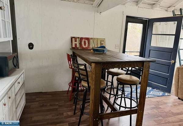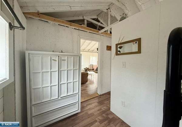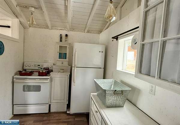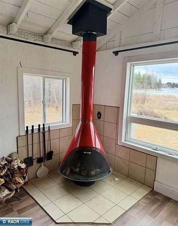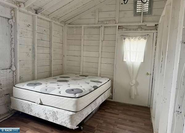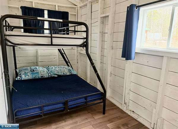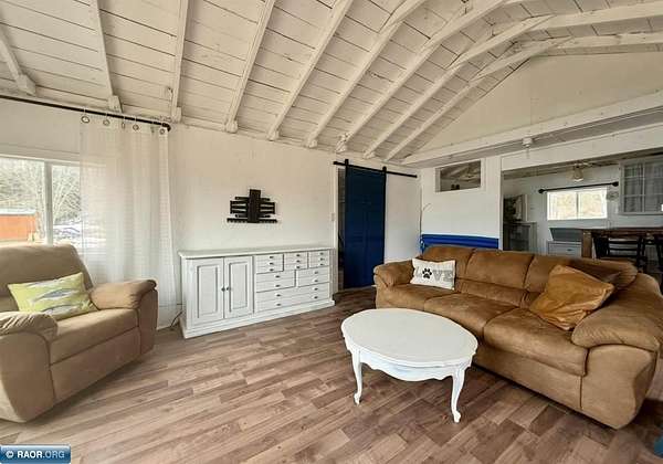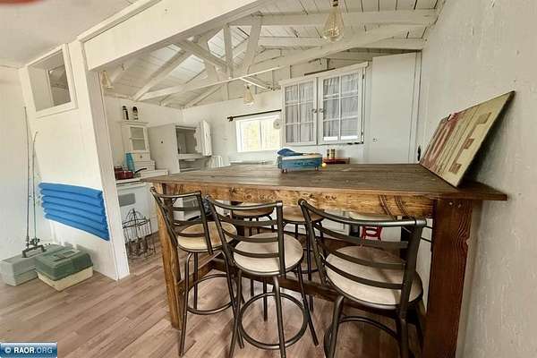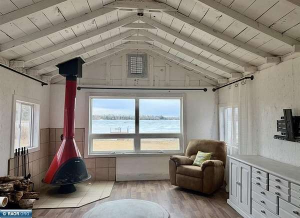 Est $702/moCute seasonal cabin on Spirit Lake Road in Mt. Iron! Enjoy beautiful lake views from the living room with an open concept layout, vaulted ceilings, and a retro-modern Lloyd fireplace for added character. This 2-bedroom cabin comes furnished and features a bright white interior with beachy blue accents throughout. Vinyl windows, metal roof, electricity, and a dock already in place. Situated on approx. 1.63 acres with state land bordering the east side for added privacy and recreation. Includes a single-stall garage. No well or septic (outhouse/privy on site). Interior walls are unfinished and uninsulated—great opportunity to finish and make it a year-round retreat. A perfect Northern MN getaway with tons of potential!