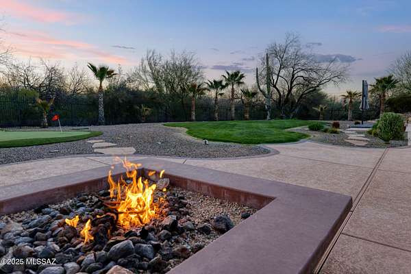 - Barbecue, Built-In Barbecue, Courtyard, Covered, Decorative Gravel, East/West Exposure, Fountain, Native Plants, Pond On Lot, Putting Green, Shrubs, Waterfall