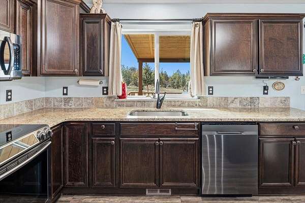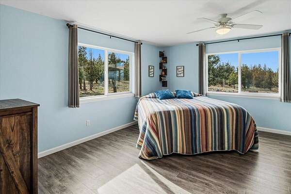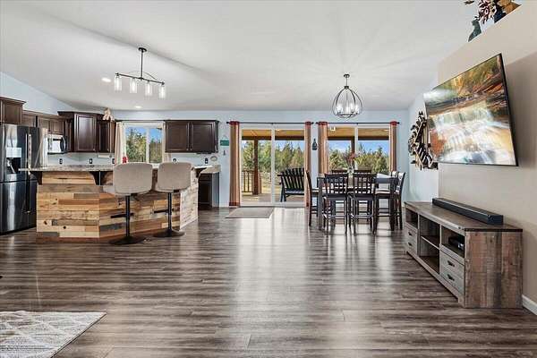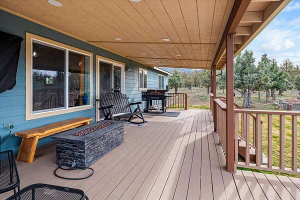 Tucked away in the peaceful beauty of Powell Butte, this stunning single-level home invites you to slow down and enjoy the lifestyle Central Oregon is known for. Built in 2019 and offering approximately 1,940 sq ft, it feels like new with thoughtful custom touches throughout. Sunlight fills the open-concept living space, creating a warm and inviting atmosphere perfect for everyday living and entertaining. Step outside to the covered deck where you can relax in the hot tub or enjoy watching the game on the outdoor big screen TV--your own private retreat. Set on 5 acres with mature trees, the property offers space, privacy, and room to make it your own. A 200-amp electric service is already in place, ready for you to build your dream workshop or additional outbuilding. Conveniently located near Bend and Redmond, this home blends peaceful country living with easy access to amenities.