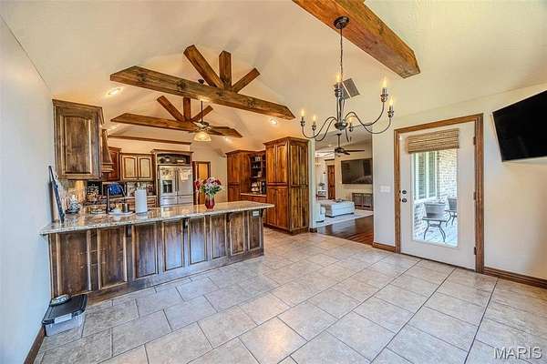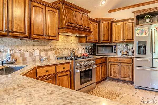 Welcome to this stunning all-brick home nestled in the highly desirable Castle Rock Estates, where quality craftsmanship and thoughtful design shine throughout. From the tall ceilings to the elegant fixtures and beautiful brick backsplash in the kitchen, every detail has been carefully considered. Step through the formal entryway into a bright and inviting living room featuring a cozy brick fireplace, large windows that fill the space with natural light, and gorgeous, well-maintained flooring that adds warmth and character. Just beyond, the formal dining area provides the perfect setting for gatherings and special occasions. The kitchen is truly a chef’s dream, offering top-of-the-line stainless steel appliances, custom cabinetry with abundant storage, and a charming coffee bar that adds both style and function. The spacious primary suite serves as a relaxing retreat with tray ceilings, a double vanity, a separate walk-in shower and soaking tub, two closets, and convenient access to the partially covered deck for peaceful mornings or evening relaxation. The main level also features two generously sized bedrooms and another full bathroom. Downstairs, the walk-out basement expands the living space even further with two additional bedrooms, two full bathrooms, two comfortable living areas, and a convenient kitchenette — perfect for guests, entertaining, or multi-generational living.