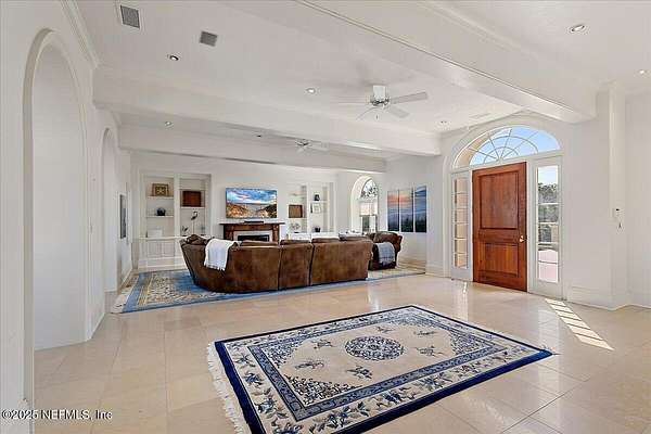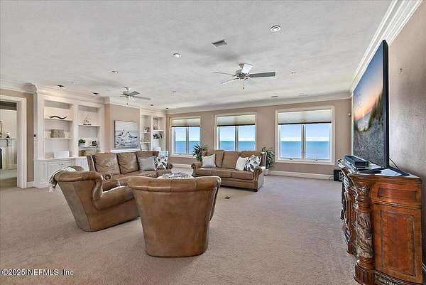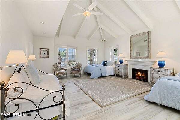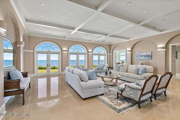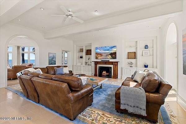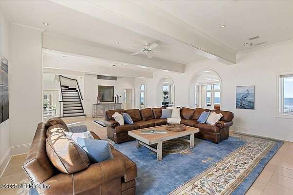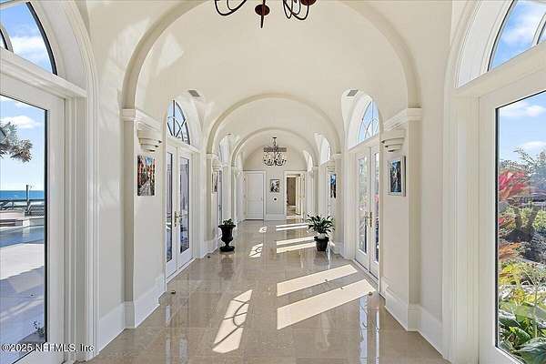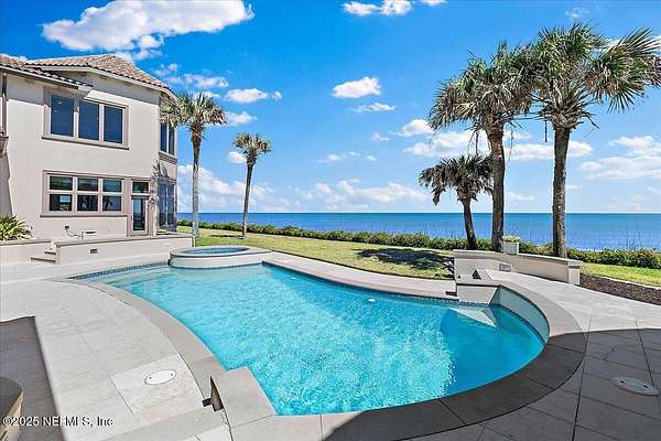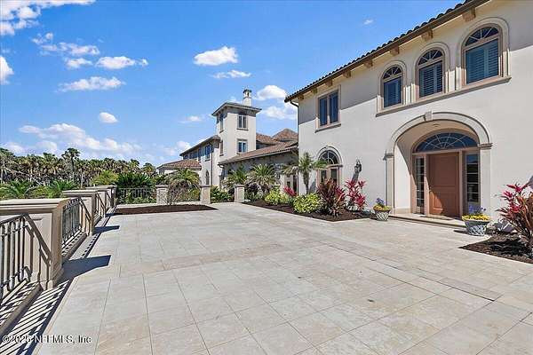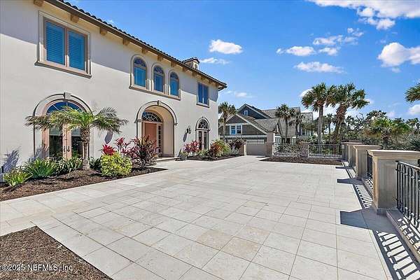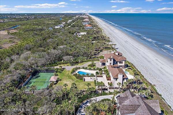 Undoubtedly one of the most impressive oceanfront estates in Ponte Vedra Beach with sidewalks to the beach clubs, this iconic property spans 200 feet along the Atlantic and extends approximately 430+ feet in depth, offering incredible privacy with a gated entrance and fenced perimeter. Surrounded by lush landscaping, this luxury retreat features two beautiful pools-one oceanside for panoramic views and another at the front for breezier days-along with a private tennis court. This estate includes a main residence and a guest house, seamlessly connected by a sunlit gallery. The layout is great for hosting, with plenty of space for guests. The property also has a four-car garage and an expansive parking area, perfect for entertaining (the fourth garage bay is currently finished as a caretaker's suite with a private bath). Inside the main home, the first floor offers 2 guest suites, a spacious kitchen, a dining room, and a bright oceanfront living space. Upstairs, you'll find 3... additional bedrooms, including the oceanfront primary suite, a second living room with amazing views, and a charming third-floor "princess perch" with a unique vantage point. The guest house is fabulous, featuring 2 bedrooms, a full kitchen, a generous living area, and a game room. With numerous extraordinary details, this estate is a rare offering in one of Ponte Vedra Beach's most coveted locations.