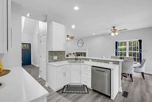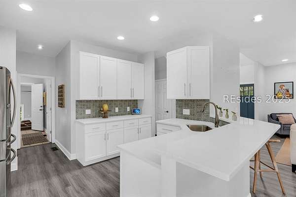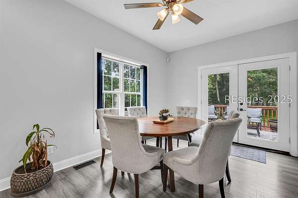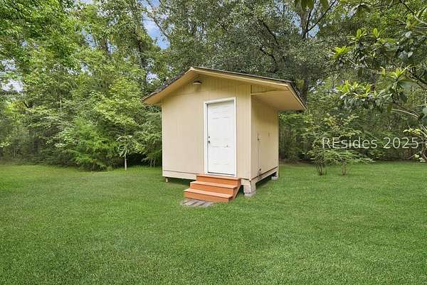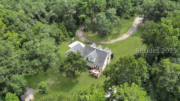 Large home made for entertaining on 2.5 marsh-oriented acres. Set on a spacious lot tucked behind century-old oaks, this property offers both privacy and a strong connection to the outdoors. Thoughtful details make it perfect for those who appreciate both comfort and nature.Inside, buyers will find the features they value most. A new HVAC system ensures year-round efficiency, while luxury vinyl plank flooring throughout provides a stylish and durable foundation. The kitchen shines with quartz countertops and a full stainless steel appliance package, combining beauty with everyday convenience.The homes layout includes a separated guest bedroom space, offering flexibility for visitors, a home office, or multigenerational living. Storage and utility are also well considered, with an electric-equipped shed for hobbies or a workshop, a hunting blind, and rear electric car parking for modern convenience.With its combination of updated systems, smart design, and a serene setting beneath historic oaks, this property offers endless opportunities.