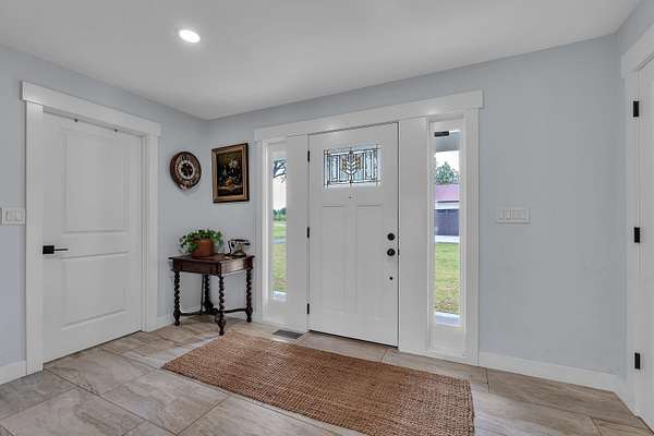 Stunning 19.21 acre property offering endless possibilities! No HOA and no Restrictions! Whether you're dreaming of a mini farm, private estate, or multi-use homestead, this exceptional property is ready to deliver. The land features an established irrigation system for a front field, scenic pond views, and additional outbuildings for expanded functionality. The fully renovated home offers 4 bedrooms and 3 full bathrooms with thoughtful updates throughout. Inside you will find a spacious living room featuring a striking accent rock wall with a wood-burning stove, along with a formal dinning room showcasing the beautiful views. The main level includes 2 bedrooms, a full bathroom, and a large laundry room with built-in cabinetry and granite counter tops. Upstairs, retreat to the luxurious primary suite complete with a private reading nook, spa-like en-suite bath featuring a tiled shower, garden tub, oversized walk-in closet, and balcony access overlooking the pond and picturesque farmland. An additional upstairs bedroom offers private access to another full bath and includes 2 walk in closets. A detached 4-car garage provides incredible versatility with finished space ideal for 2 offices, hobby rooms, or flex space. Two additional buildings on the property and 6 separate kennels, add even more storage and functionality. Rare opportunity to own a beautifully updated home on acreage with breathtaking views and unlimited potential.