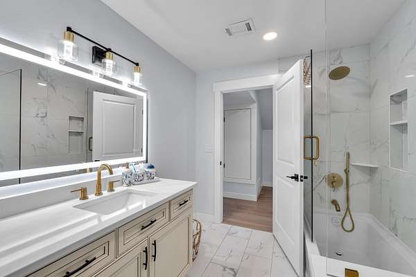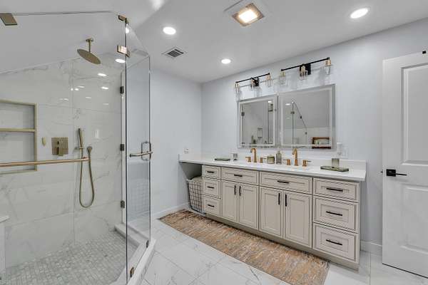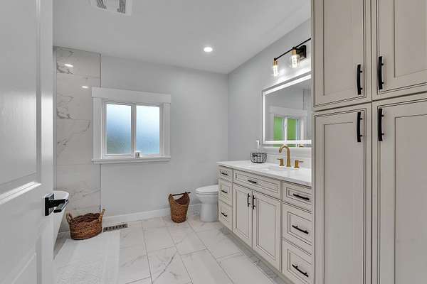 - Ceilings-Smooth, Countertops-Solid Surface, Fireplace, Garden Tub, Smoke Detector, Split Bedroom Plan, Utility Sink, Walk in Closet