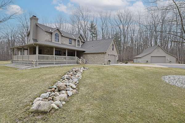 For more information dial the Listing Agent directly. The Contact Agent button will not take you there. Welcome to your private 18-acre estate just outside the village of St. Charles. Where space, privacy, and lifestyle come together in a way that's incredibly hard to find. Set well off the road and approached by a winding drive framed with custom stone pillars and private entry, this property is nestled into the woods for exceptional privacy. What truly sets it apart is the rare and diverse landscape, featuring a unique blend of open areas, mature wooded acreage, a private stocked pond, and a large wetland filled with cattails that naturally attracts and holds wildlife. This combination creates an environment that is both peaceful and alive with nature, offering a setting that is nearly impossible to replicate. The incredible custom-built residence offers nearly 4,000 square feet of living space, featuring 4 bedrooms and 3.5 baths, thoughtfully designed for both everyday living .... and entertaining. Recent updates include a new roof, gutters, and skylights (2024), furnace, hot water heater (2025), decking (2021), patio (2023), and updated garage doors (2023), ensuring peace of mind for years to come. Inside, the home blends comfort and functionality with standout features including a cathedral entry, spacious kitchen with oversized island and induction cooktop, walk-in pantry, and a bay window overlooking the pond. Multiple living areas including a sunroom/sitting space offer flexibility and warmth, enhanced by radiant in-floor heating for Michigan winters. Upstairs, all four bedrooms are thoughtfully positioned, including a private primary suite with walk-in closet and en-suite bath. A bonus room connected to the oversized bedroom above the garage provides the perfect space for an office, playroom, or additional lounge. Step outside and the property truly shines. A fenced yard, expansive decking, and covered porches create ideal spaces to relax and take in the peaceful surroundings. Beyond the home, the 30x40 pole barn is equipped with an upstairs storage loft and 220V power. Beyond that there is also an additional powered storage shed, providing you ample space for equipment, hobbies, and projects. Follow the driveway back to your private stocked pond, complete with beach area and powered pavilion, perfect for entertaining, relaxing, or enjoying quiet evenings by the water. The land continues with established trails, open spaces suitable for food plots or future expansion, and a diverse mix of hardwoods and pines. The wetland and surrounding cover create a natural habitat where deer, turkey, and other wildlife regularly live and travel, making this property paradise especially for outdoor enthusiasts and those seeking a true connection to nature. Properties offering this level of privacy, diversity of land, and usability are exceptionally rare. Automated valuation models such as Zillow do not capture the value of acreage, improvements, and unique features--this is a property that must be experienced in person to truly appreciate. Schedule your private showing today and experience everything this one-of-a-kind property has to offer. Maps contained on our sites are there to simply depict the overall layout or shape of a given property and show what it looks like from an aerial view. These maps are neither a legally recorded map, nor any type of a legal survey and should never be used as such. Also "Acreage" amounts are displayed as according to the information we have obtained through local government and are in no way guaranteed or warranted to be exact.
